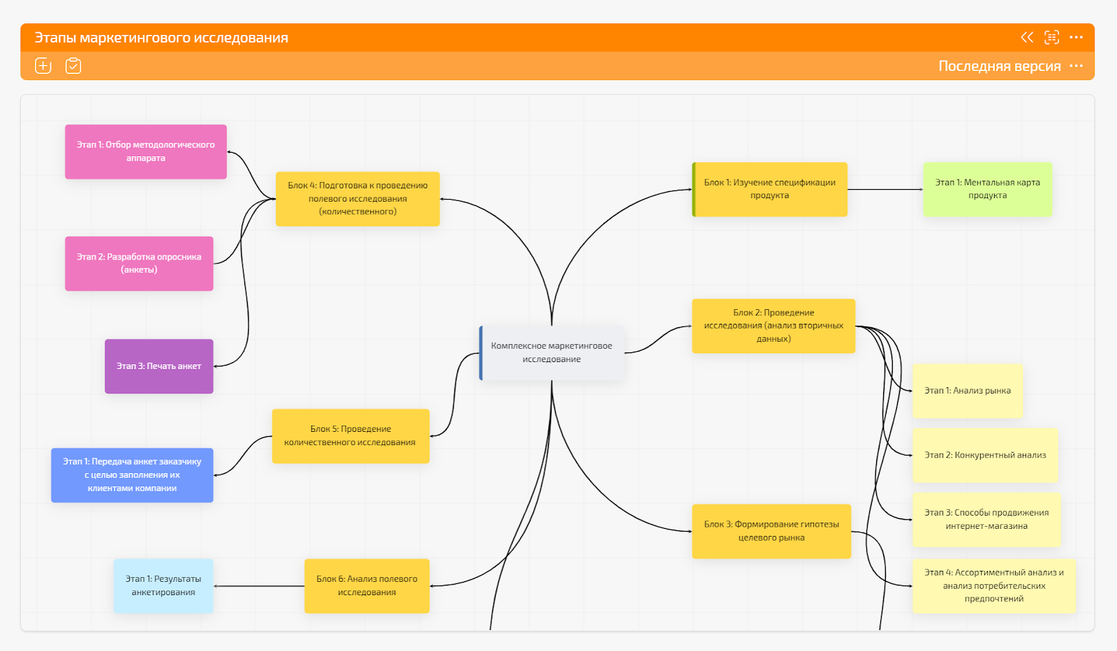 Чтобы не утонуть в хаосе, важно структурировать все процессы. Хороший способ — создать диаграмму связей, где вы разложите наглядно все идеи, задачи и их взаимосвязи. Это удобно делать в планировщике, где можно ставить дедлайны, назначать ответственных и отслеживать прогресс.