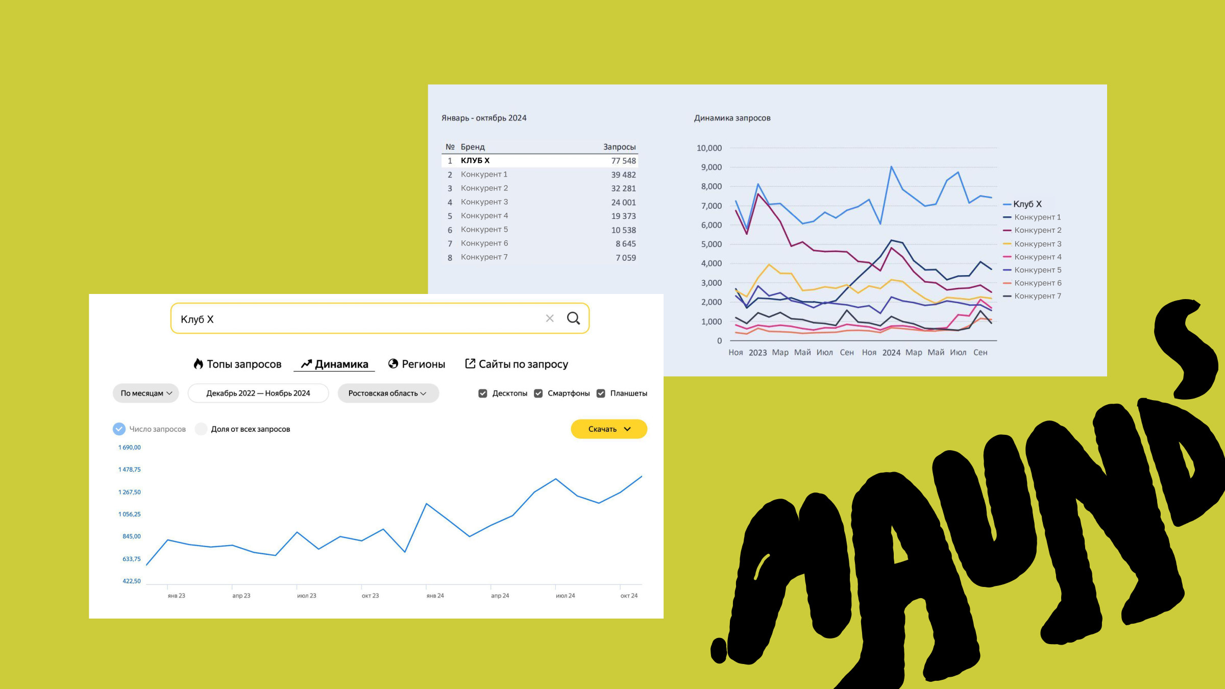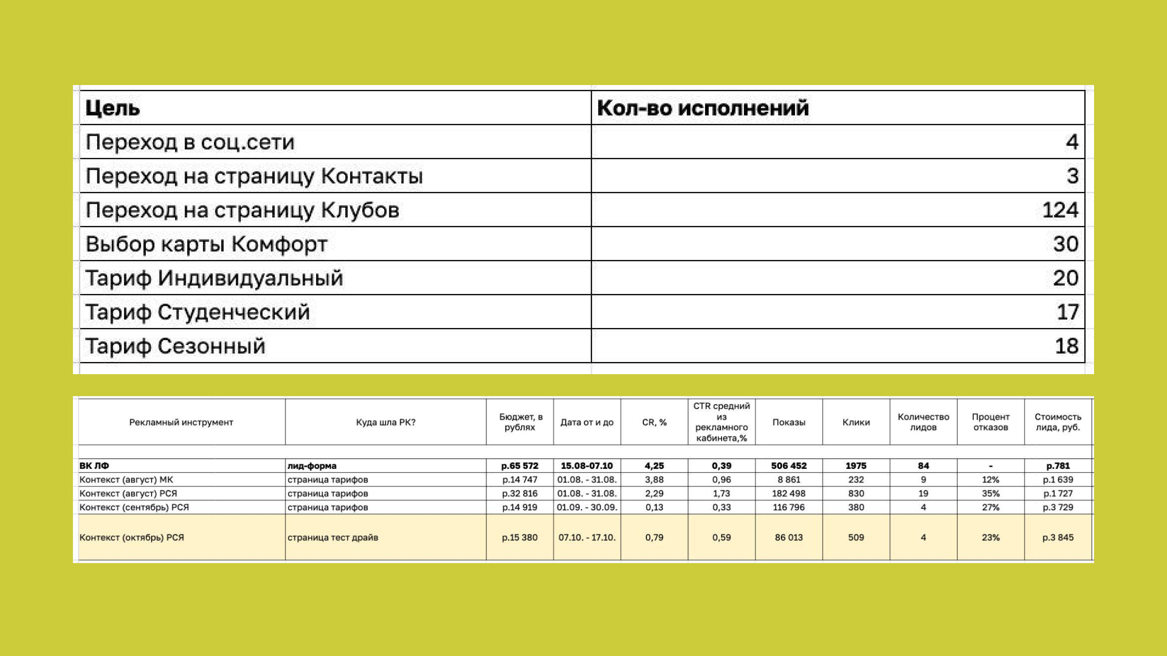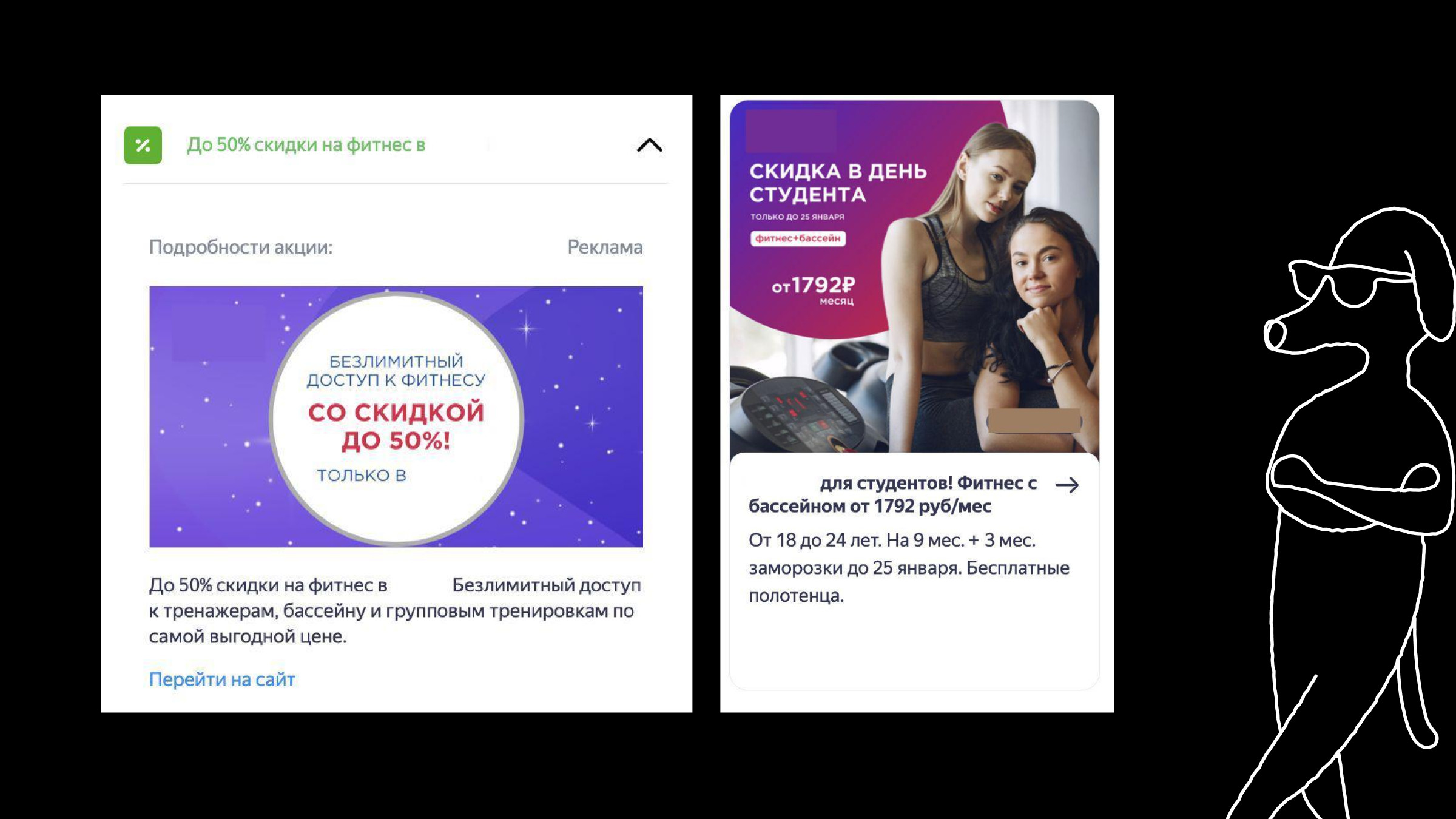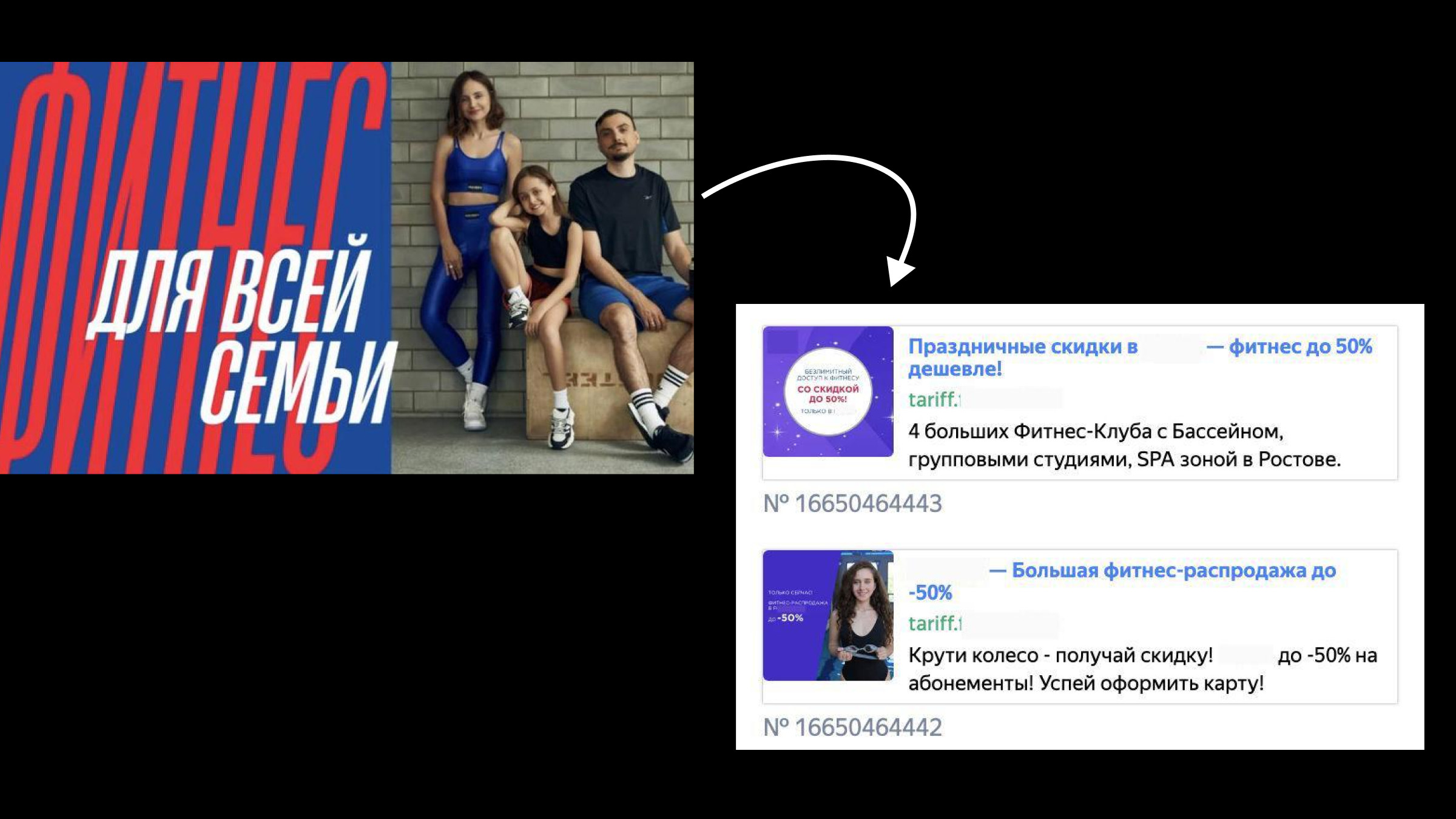 А еще — сильный бренд, высокий трафик, приличный бюджет. Мечта для всех, кто берется за лидогенерацию. К моменту старта нашего совместного марафона Х уже был № 1 в категории «фитнес» в поиске Яндекса в 2024 году и имел солидную базу лояльных клиентов. Партнер предоставил нам то, что видит во снах каждое агентство — прочный фундамент, на котором можно возводить сильные маркетинговые конструкции. Совместно с партнером поставили амбициозные цели и обалдели от их количества. Но мы в Haunds не пальцем деланные, а потому смело взялись за план. Задумали: Хорошая новость — Х уже был топ-1 по спросу в регионе, как мы и сказали. Плохая новость — даже на хорошем старте можно запороть все, если игнорировать аналитический подход в маркетинге. Поэтому, прежде чем открывать кран с бюджетом, мы сделали то, что делают адекватные спецы: разрезали нашего слона на кусочки и с напористостью сыщика из Бременских музыкантов начали изучать каждый по-отдельности. Разложили ЦА на пять сегментов — от зумеров до «мне надо, чтобы суставы не болели». Смотрели, что их триггерит, где они обитают, и как принимают решения. Это дало нам основу для всего — от офферов до медийки. Или поговорить с теми, кто уже его попробовал. Поэтому, чтобы выйти на лучшее решение и не обосновывать его конем в вакууме, мы пошли беседовать с клиентами. Спросили, как им этот онлайн: Система — наше второе имя, а значит и к исследованию других игроков рынка мы подходим тщательно. Рынок Ростова — настоящая битва за клиентов. Клубов много, цены — от эконом-сегмента до «ваш безлимит по цене бизнес-ланча в Four Seasons». Все жмут на акции, но каждый заявляет о своем УТП. Конкуренция жесткая, и чтобы выжить, мало просто быть «хорошим клубом». Надо выделяться так, чтобы вас запомнили и выбрали. По цифрам все сложилось красиво — стратегия нарисовалась четкая, пошаговая, как по учебнику, но мы-то знаем, что реальность любит подкидывать интересные жизненные повороты. Поэтому с самого начала закладывали гибкость в свои действия и планировали жестко адаптироваться на лету. Погнали тестить, вертеть, подкручивать и добивать результат в боевых условиях. Сначала — рутина, без которой никак. Мы оцифровали трафик, выгрузили цифры и посмотрели, какие каналы больше всего имеют статус лидера по заявкам. Но важнее не кто громче кричит, а кто конвертит. Тут поисковый трафик дал 46,1% всех заявок, а реклама — 33%. Вывод очевиден: на поиске не экономим, а рекламу — оптимизируем по максимуму. Если бы у нас был один выстрел, мы бы доверили его Директу. Это нормальная рабочая лошадка, которая не выделывается и готова тащить на себе тест различных гипотез. 1). Брендовая РК без тормозов: открутили лимиты — и понеслась. Брендовые запросы давали лиды за 247,55₽ с конверсией 12,7%. Почти даром, учитывая рынок. 2). Через РСЯ заявляем, что онлайн-карта со скидкой: анализ показал, что люди хотят не только знать, но и покупать. Закинули инфу про скидку 5% по промику, сделали яркие акцентные креативы и начали грести заявки. 3). Кружки по интересам? Нет, мастер-кампании по интересам! Поигрались с оплатой за конверсии и выиграли: в одной рк — CPL 310₽ при конверсии 12,8%, в другой — CPL 386₽ при 9,25%. 4). Медийка + ретаргетинг: пиф-паф и лид сражен! Показали ролик с новогодним колесом фортуны, а потом вернулись к тем, кто досмотрел. Итог: 579 конверсий по 247₽. В VK мы, как добросовес