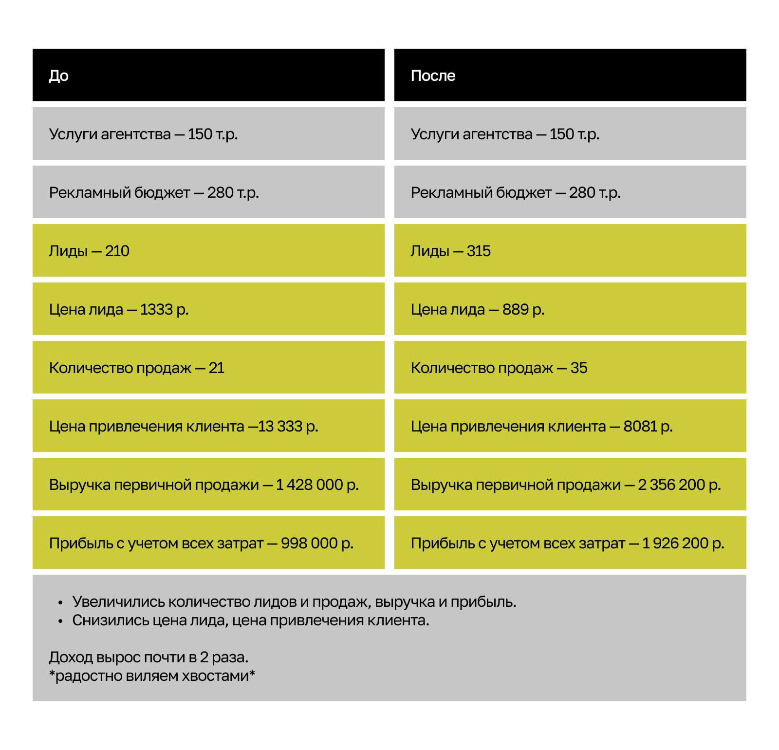 Основный принцип инвестирования в маркетинг — масштабируемость. Даже подняв одну метрику, можно ощутимо увеличить прибыль. Стая Haunds отлично владеет этой техникой. Если бы гончим преподавали математику, они бы были отличниками.