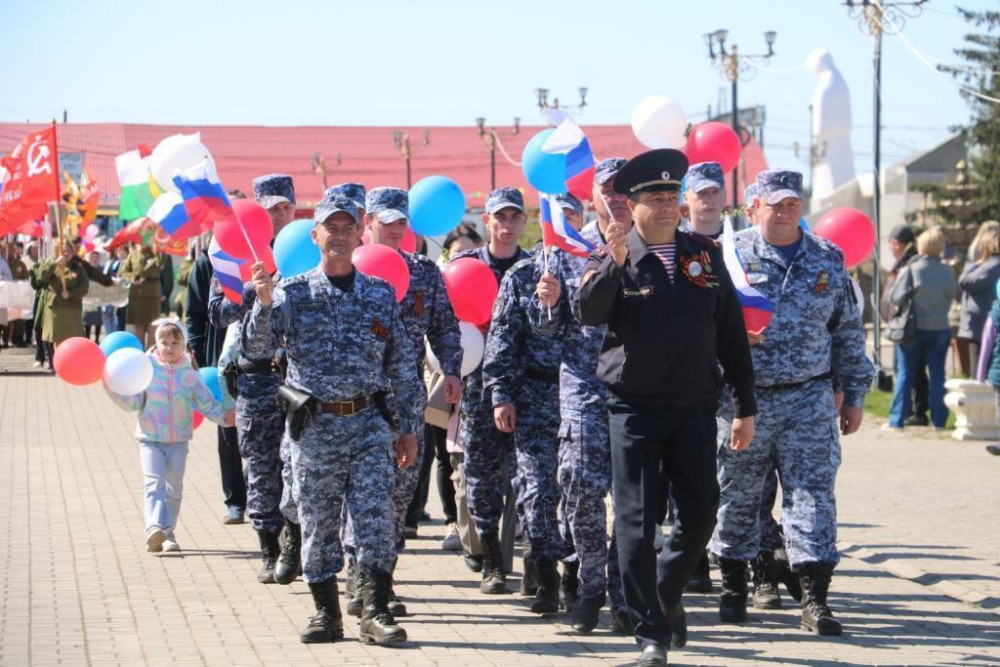 1 мая 2025 года в Любинском районе Омской области сотрудники вневедомственной охраны Росгвардии на праздновании «Весны и Труда» прошли торжественным шествием с российскими флажками и воздушными шарами.