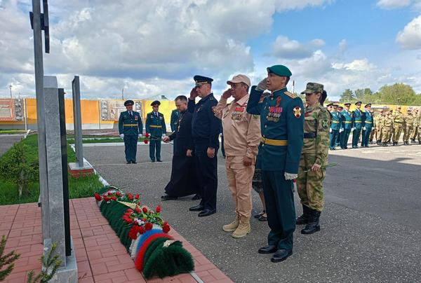 Присутствующие почтили память погибших военнослужащих минутой молчания и возложили цветы к мемориальному комплексу «Связь трех поколений» и к монументу Героя Российской Федерации генерал-майору Николаю Скрыпнику.