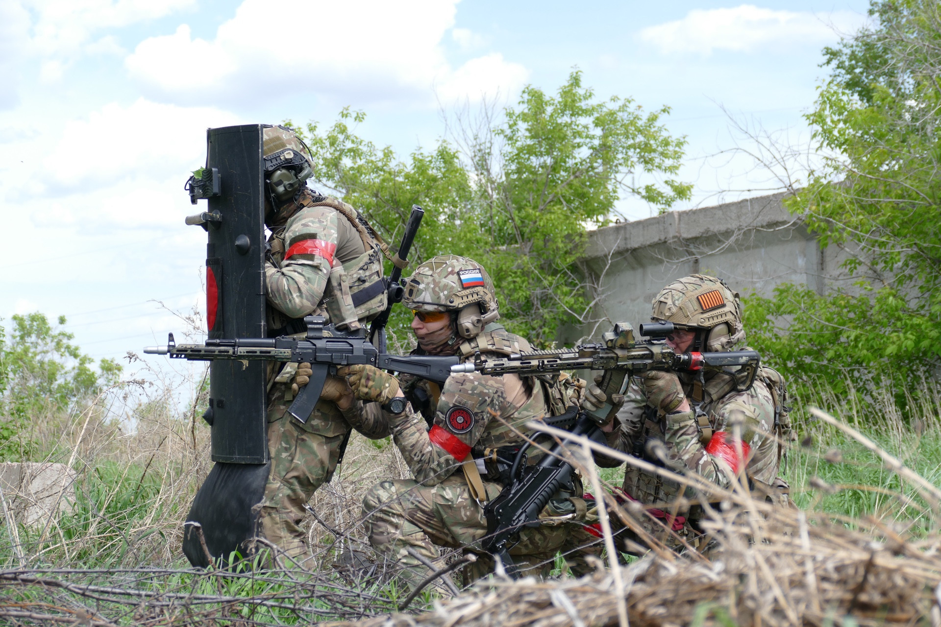 оцепление территории условной контртеррористической операции, а бойцы