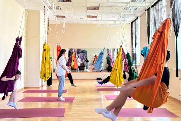 «Аэройога помогает гармонично развивать мышцы, суставы и вестибулярный аппарат, также упражнения способствуют развитию гибкости и укреплению осанки ребенка» — отметила педагог студии «Гало» Екатерина Шипицина.