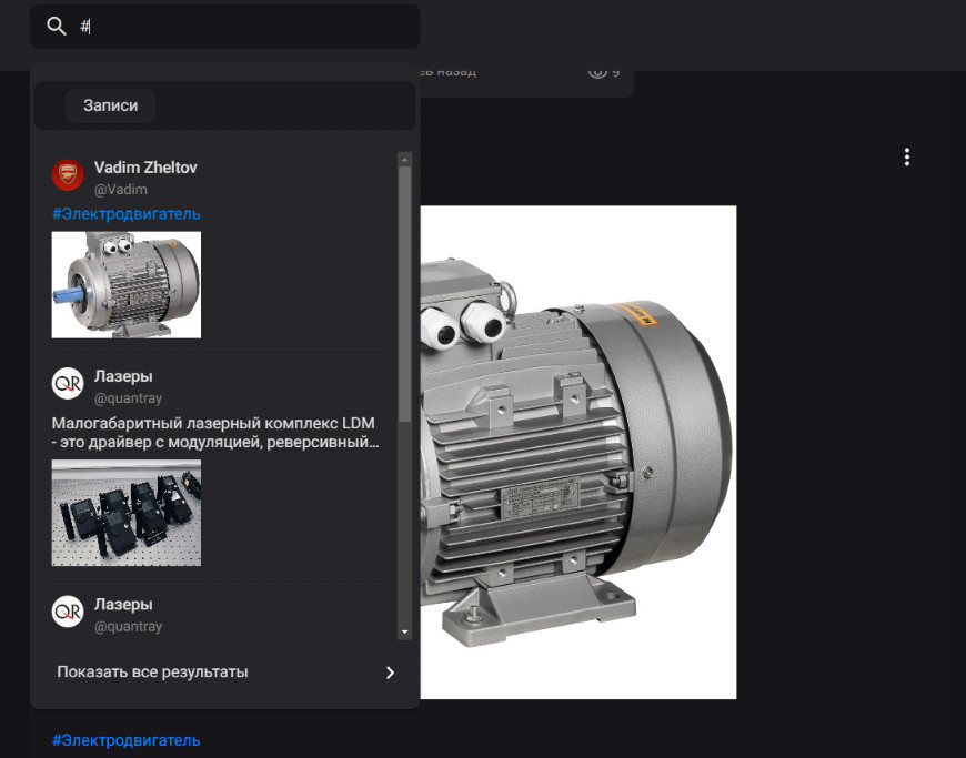 2) Удобный поиск по хештегам