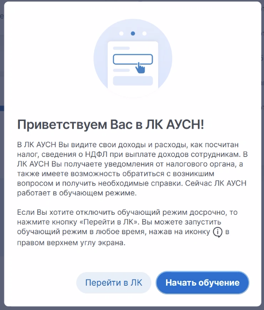 Вот такая шикарная кнопка есть в ЛК ИП. У компаний ее нет. Да-да, сидит тут себе на четвертой странице баннера-листалки. При следующем визите в ЛК налогоплательщика Вы увидите такое зрелище. Значит, Вы все сделали правильно. Вот так вот, самому зазорно писать статью о том, как найти кнопку на сайте, но на момент написания во всем Рунете нет ни единого материала о том, как это сделать. Значит, пусть будет первый. Может быть, кому-то окажется полезным. Но еще больше надеюсь, что эту дурацкую ситуацию исправят админы сайта ФНС и актуальность статьи пропадет. А если вы хотите больше узнать, что такое АУСН и подходит ли он Вам, заходите к нам на сайт или в телеграм, мы о нем тоже рассказываем.