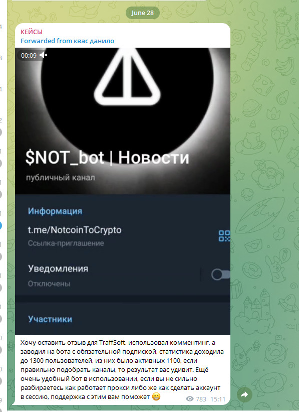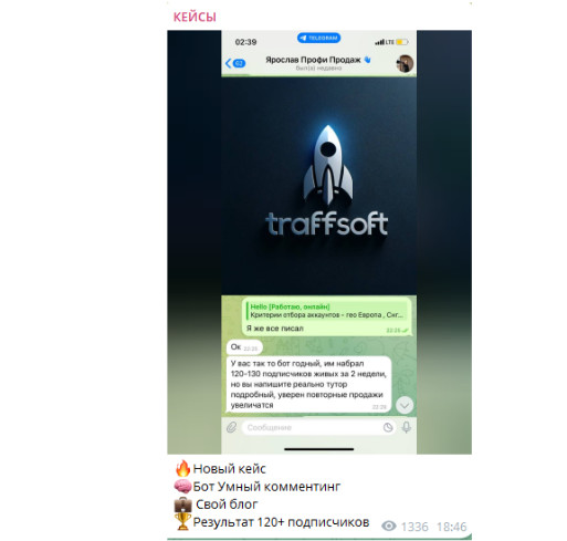 Тематика криптовалюта Новостной канал Обучение продажам Канал Модели — Блог Доход напрямую зависит от числа оставленных комментариев и среднего чека. Например, мы продвигаем наш софт с помощью автокомментинга в SMM-каналах, что в среднем приносит 1–2 продажи в день. Увеличив объем, можно выйти на доход до 5000$ в месяц. Нейрокомментинг в Telegram — это эффективный инструмент автоматизации, расширяющий возможности бизнеса. Он позволяет привлекать лидов, взаимодействовать с клиентами и совершать сделки без вашего участия. Не откладывайте — начинайте использовать этот метод уже сегодня! Более подробно вы сможете узнать в нашей поддержке Traffsoft