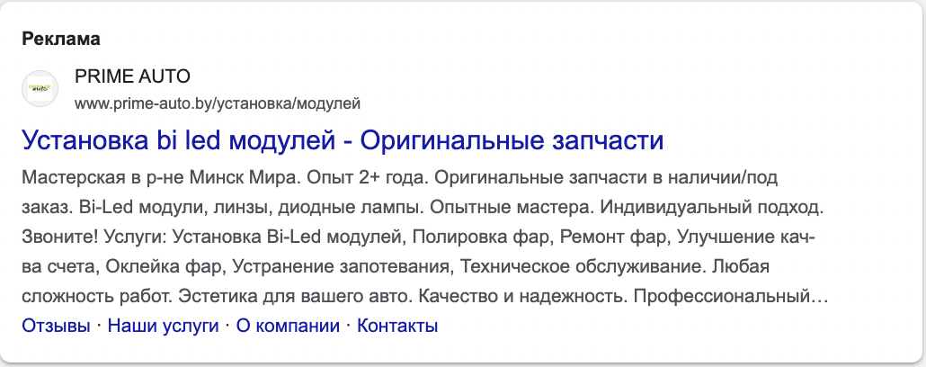 Наш клиент — мастерская автосвета в Минске, специализирующаяся на ремонте и восстановлении фар, установке bi-led модулей и бронировании фар. До обращения в агентство бизнес не использовал контекстную рекламу и хотел быстро нарастить поток заявок через сайт.