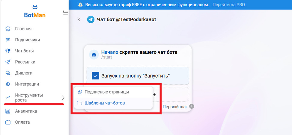 2. Регистрация в сервисе BotMan — Зарегистрируйтесь на сайте https://botman.pro — Подключите вашего Telegram-бота,