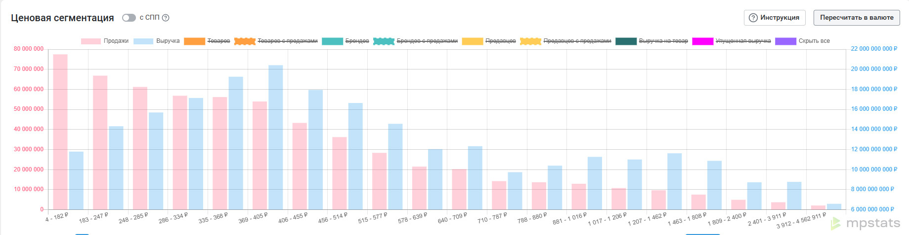 Кажется, что при таком многообразии товаров очень сложно зайти со своим продуктом. Но мы с вами опытные селлеры и не будем верить субъективным мнениям бабушек у подъезда. Мы пойдём в сервис аналитики MPSTATS https://clck.ru/3GCoYo и посмотрим на цифры в данных категориях.