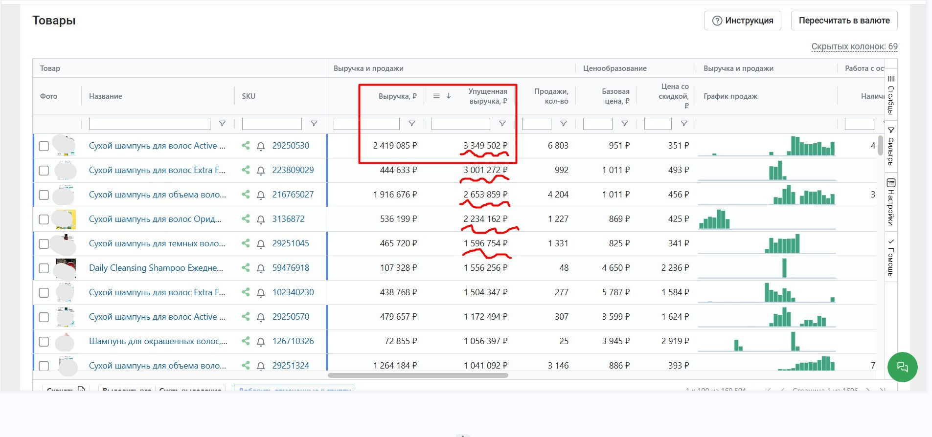 Если товар № 1 полтора года двигался к тому, чтобы стать лидером, то товар 2 разогнался за счёт рекламы и залетел с двух ног в новогодний тренд. Предполагаю, что он будет сохранять обороты до следующего инфоповода «8 марта», а затем снизит рекламную ставку. Производители товара № 1 утверждает, что они уже 10 лет на рынке, но сервис аналитики впервые обнаружил его 22.10.2023. Продавец товара № 2 — один известный блогер и певец. Вначале, я не узнал его на фото. Но потом нашёл их группу и таки да, это его косметика. Они действительно стартанули осенью и по сей день активно рекламируются блогерами. При такой медийной поддержке высокий средний чек воспринимается как должное. «Это ж косметика самого ...! Она не может стоит дешево!» — подумают покупатели и затарят себе несколько наборов. Но всё таки я, как владелец контрактного производства, знаю, что и сколько стоит. Поэтому могу смело сказать: «Команда проекта — красавчики! Рубят капусту пока звезда горит ярко.» Как оказалось, 4 позиция в рейтинге товаров, это также косметика данного бренда. К слову, если вы блогер или медийная персона, мы можем сделать косметику для вас «под ключ». Придумаем бренд, логотип, рецептуры. Отгрузим на маркетплейсы и поможем с операционной деятельностью. Вам останется только утверждать этапы работ и пиарить свой бренд. Подробнее про контрактное производство описал тут. У всех 4 лидеров есть галочка «оригинал», подробнейшее описание с необходимыми ключевыми словами, приятное оформление карточек с демонстрацией выгод для потребителей. Ещё обратим внимание на график продаж. Если опытные продавцы продают за счёт своего бренда, ключевых слов и прочей скучной рутины, то команда певца продает за счёт рекламных интеграций у блогеров. Предположительно всплески продаж следуют после упоминаний косметики кем-то из медийных персон. Ну, и напоследок покажу чемпионов по упущенной выручке за январь 2025. Анти-лидеры не заработали более 10 млн рублей из-за того, что товара не было в наличии. Мотаем на ус пустующие ниши, которые можно заполнить своим шампунем. Закончить хочу пословицей «Готовь сани летом» или в нашем случае «Производи шампуни к инфоповоду». Ближайший крупный — 8 марта. Мы как контрактное производство можем поставить партию за 2 недели. Но это самое простое. Кроме производства нужно заложить время на разработку макета, закупку тар, печать этикеток, комплектовку, отгрузку на Wildberries. Плюс товару нужно минимум несколько недель на создание рейтинга и поднятия в позициях до пика. Иначе в пик его просто не увидят. Поэтому если вам актуально с двух ног залететь в косметический тренд, узнайте подробнее про контрактное производство тут. Cервис аналитики, используемый в статье.