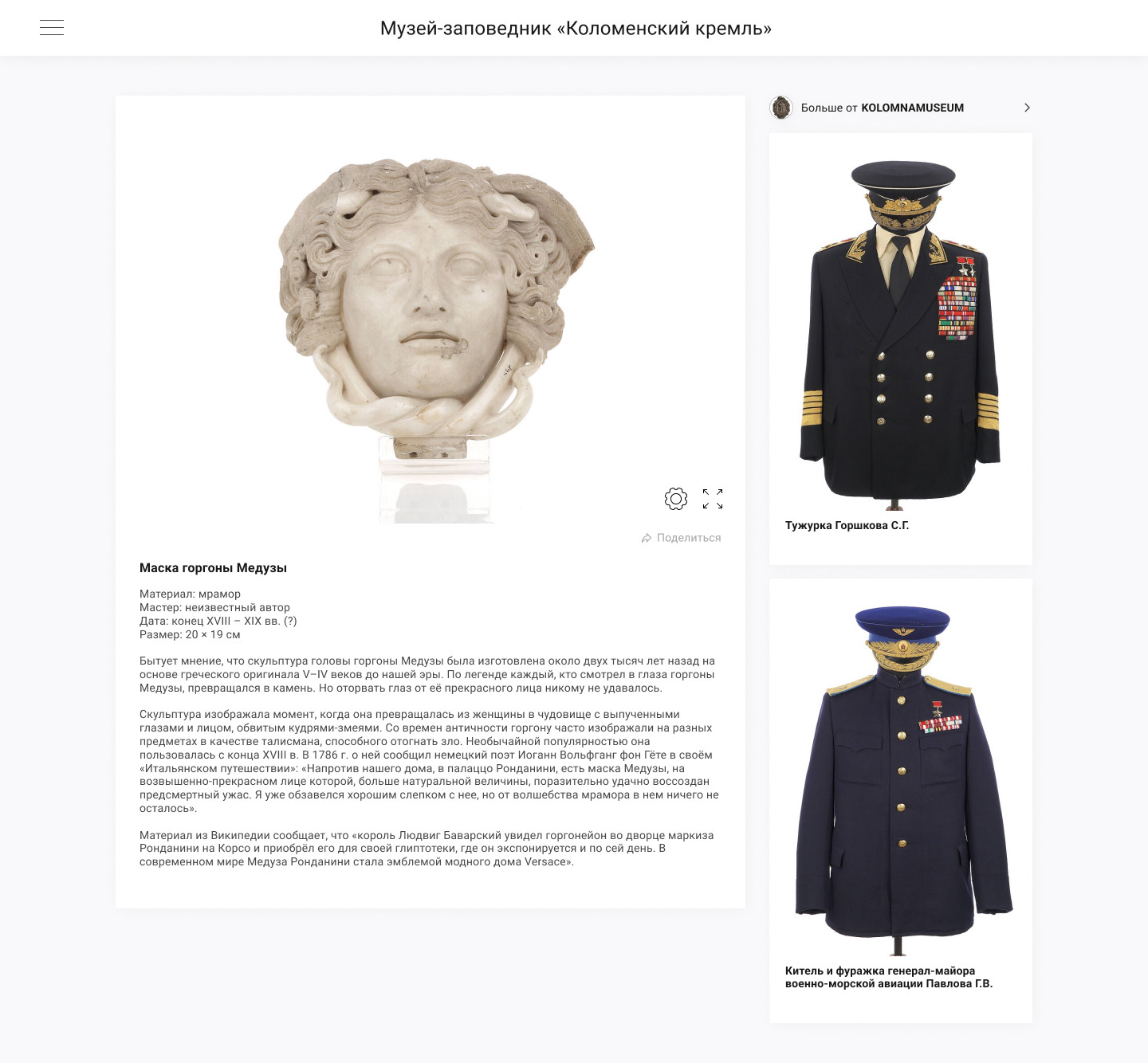 Ознакомиться с экспонатами виртуального музея можно по ссылке: https://3dplatforma.ru/kolomnamuseum