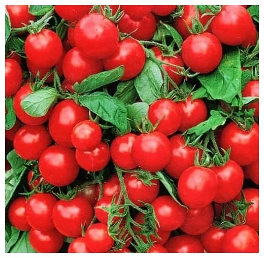 - Описание: Ранний гибрид (98-105 дней), высота куста до 2 метров. Плоды красные, круглые, весом 18-20 г, собраны в кисти по 22-35 штук.