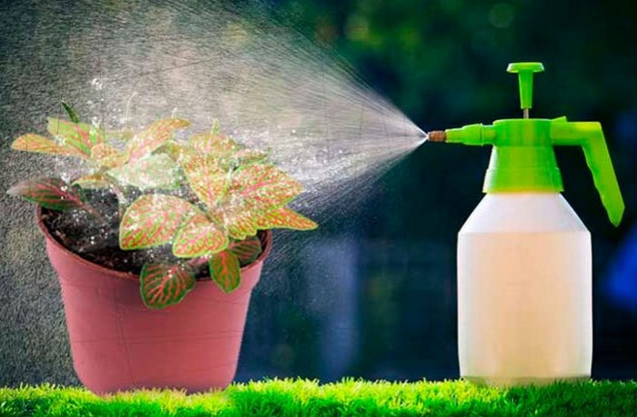 Опрыскайте растения. Используйте пульверизатор, чтобы равномерно нанести раствор на все части растения, включая нижнюю сторону листьев и поверхность почвы.