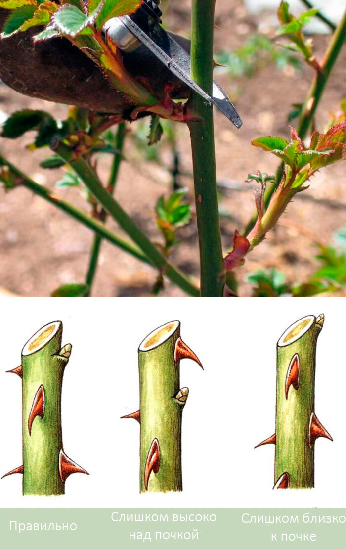 - Для плетистых роз оставьте длинные побеги, а для кустовых — укоротите до 15–20 см.