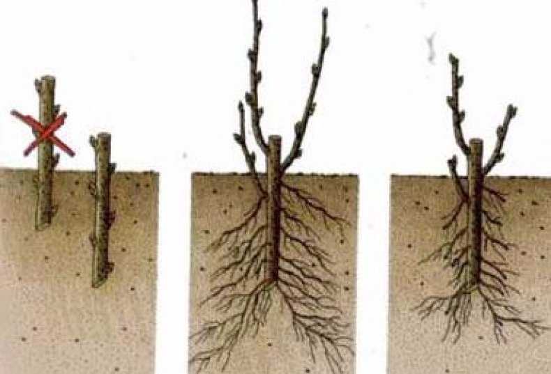 - Одревесневшие черенки заглубляют, оставляя на поверхности 2 почки.