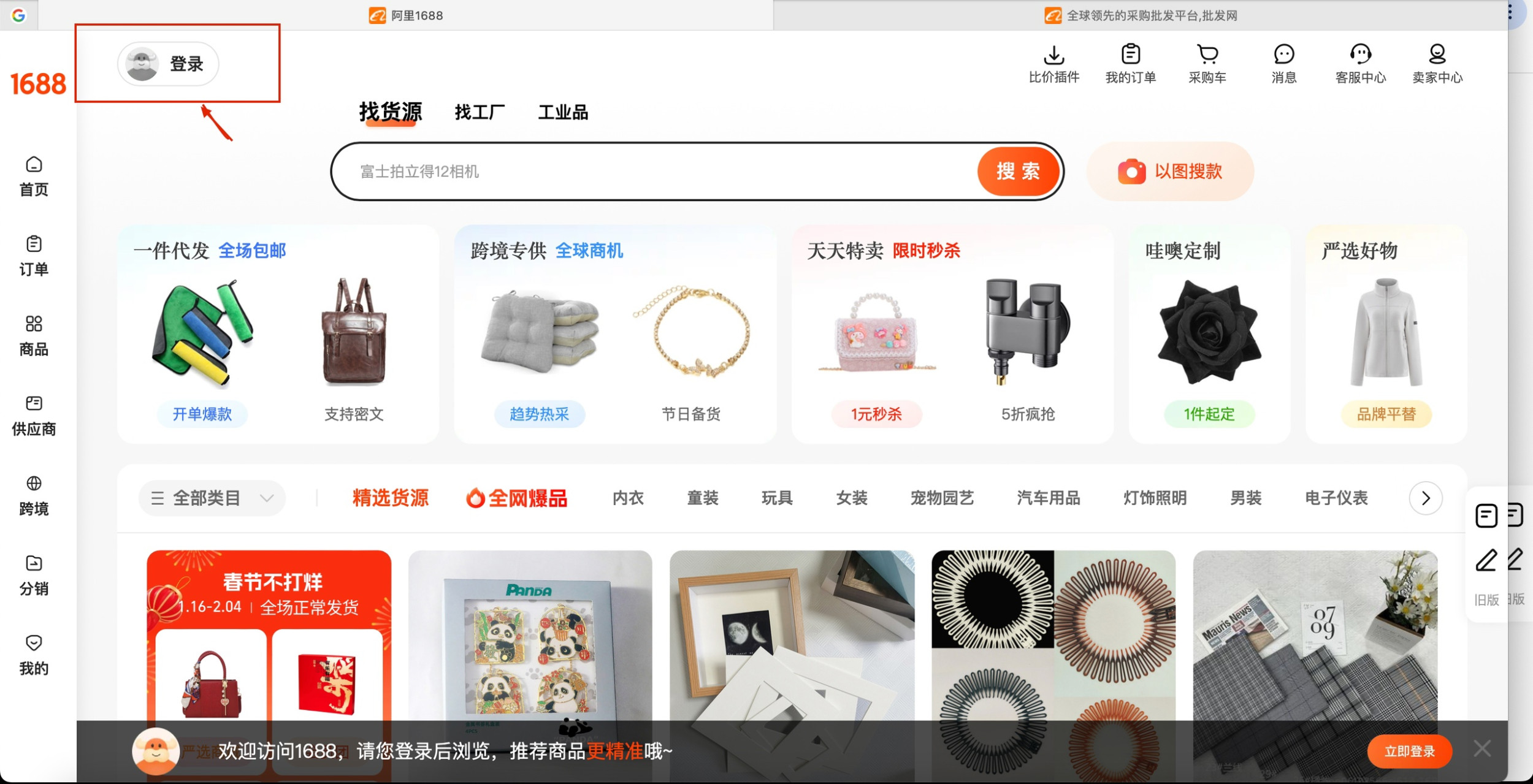Если у вас уже есть регистрация на taobao.com, вы можете использовать те же логин и пароль для входа на 1688.com. Taobao более лоялен к иностранцам, и это может упростить процесс. Если регистрации нет, то рекомендуем скачать приложение или зайти на сайт, используя переводчик, вы легко сможете зарегистрироваться по номеру телефона.
