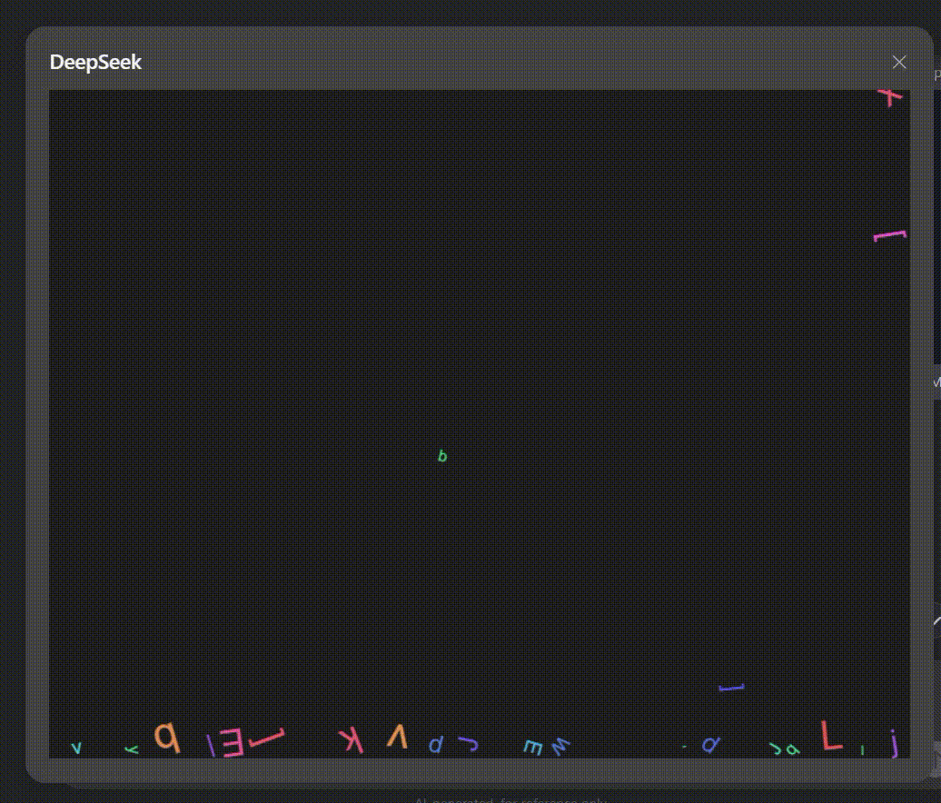 - Генерация кода: DeepSeek не просто бросает на вас кусок HTML. В тесте он создал анимацию падающих букв с физикой столкновений — уровень, доступный раньше только в Claude и ChatGPT. Это уже рабочий прототип за 10 секунд.