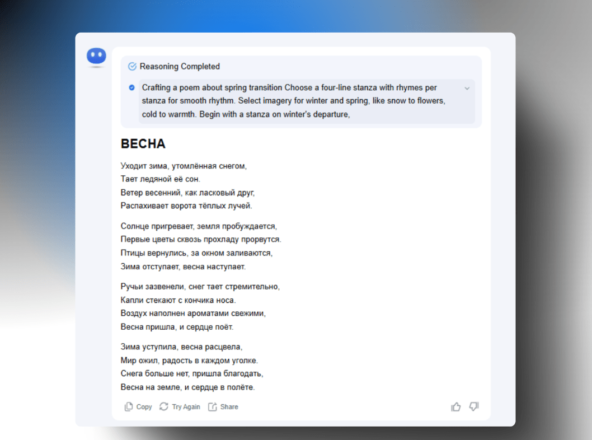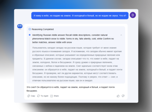 Чтобы объективно оценить возможности Kimi, его протестировали на нескольких ключевых бенчмарках, сравнив с другими ведущими AI-моделями, такими как OpenAI o1, OpenAI o1-mini и Qwen. Результаты оказались весьма впечатляющими, особенно в областях, требующих математических навыков, навыков программирования и визуального анализа. Математика: Kimi продемонстрировал выдающиеся результаты в сложных математических тестах AIME 2024 и MATH 500, значительно превзойдя все сравниваемые модели OpenAI и Qwen. Это говорит о его сильных способностях к математическому рассуждению и решению задач. Код: В области кодирования Kimi показал очень сильные результаты. На платформе Codeforces, оценивающей навыки соревновательного программирования, Kimi сравним с OpenAI o1. В тесте LiveCodeBench v5, проверяющем генерацию работающего кода, Kimi превосходит OpenAI o1. Визуальное восприятие: Kimi продемонстрировал хорошие результаты и в этой области. Он лидирует в тесте Math Vista, который оценивает способность решать математические задачи, представленные визуально. В комплексном тесте MMMU, оценивающем мультимодальное понимание, Kimi уступает OpenAI o1, но показывает результат на уровне OpenAI o1-mini. Общий вывод: Kimi k1.5 long-CoT показывает впечатляющие результаты в бенчмарках, особенно в областях, связанных с математикой (STEM), кодированием и визуальным анализом. Он превосходит или сравним с известными моделями от OpenAI и Qwen, что подтверждает его высокий потенциал и делает Kimi мощным инструментом для решения широкого круга задач. Kimi — это не просто чат-бот, а серьезный конкурент на рынке AI, способный справляться со сложными задачами, требующими логики, знаний и аналитических способностей. Внешний вид Kimi не удивит вас какими-то наворотами. Все просто и понятно, как в старой доброй записной книжке. 1. Главная страница и кнопка «Start New Chat»: Нажимаете — и начинаете новый диалог. Ничего лишнего. 2. История чатов: Здесь, как в архиве, хранятся все ваши беседы с Kimi. Удобно, если нужно вернуться к чему-то важному. 3. Настройки: Тут можно настроить внешний вид (выбрать тему) и язык интерфейса. 4. Обратная связь и выход: Если что-то не понравилось или, наоборот, очень понравилось, — можно оставить отзыв. Ну, а кнопка «Выход» говорит сама за себя. 5. Доступ к Kimi на разных устройствах: Kimi старается быть всегда под рукой, поэтому у него есть несколько версий: А что внутри чата? Внутри чата тоже все довольно лаконично, но функционально. Есть две основные настройки: 1. Основная модель: Это базовый режим работы Kimi, который подходит для большинства повседневных задач. 2. «k1.5 Long Thinking»: Этот режим — для тех случаев, когда нужно «пошевелить мозгами» посильнее. Он позволяет Kimi глубже анализировать информацию, в том числе изображения и текст. Чтобы начать пользоваться Kimi, достаточно зайти на его сайт (kimi.ai) и нажать кнопку «Start New Chat». Никаких сложных регистраций и заполнения анкет! Да практически все, что угодно! Вот несколько примеров: Помните: Чем точнее и понятнее вы сформулируете свой запрос, тем лучше Kimi вас поймет и тем точнее будет результат. В следующей части мы перейдем к более сложным и интересным тестам. Я покажу, как Kimi справляется с загадками, математическими задачами, написанием научных статей и даже созданием игр! Итак, мы уже немного познакомились с Kimi, узнали, что он умеет и как им пользоваться. Теперь пришло время испытать его в деле! Я подготовил для него не