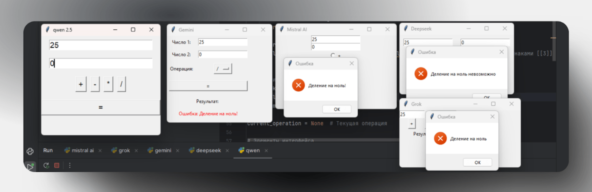 - Qwen 2.5: Не обрабатывает ошибки — это серьезный недостаток.