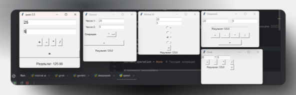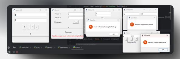 Хотя все ИИ сгенерировали код калькулятора, не все справились с задачей полностью.