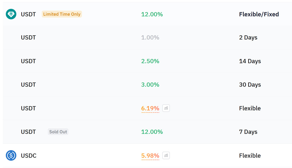 У меня есть много клиентов, кто пользуется стейблкоинами, но мало кто знает, что их можно не просто хранить, но и получать по ним проценты. Здесь не будет запредельной доходности, но долларовые ставки будут лучше, чем в любом банке. Посмотрите сами, это пример предложений с биржи Bybit: