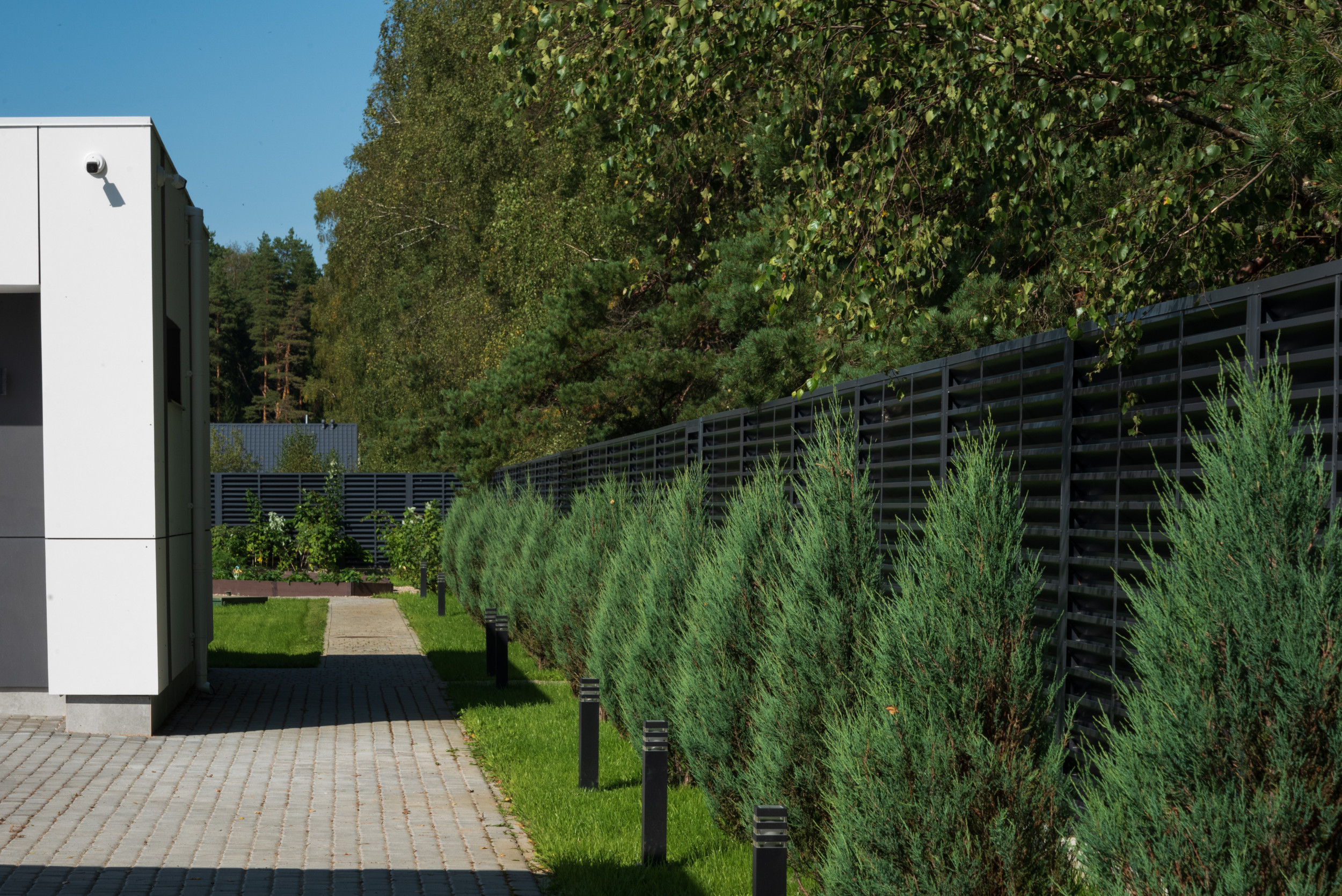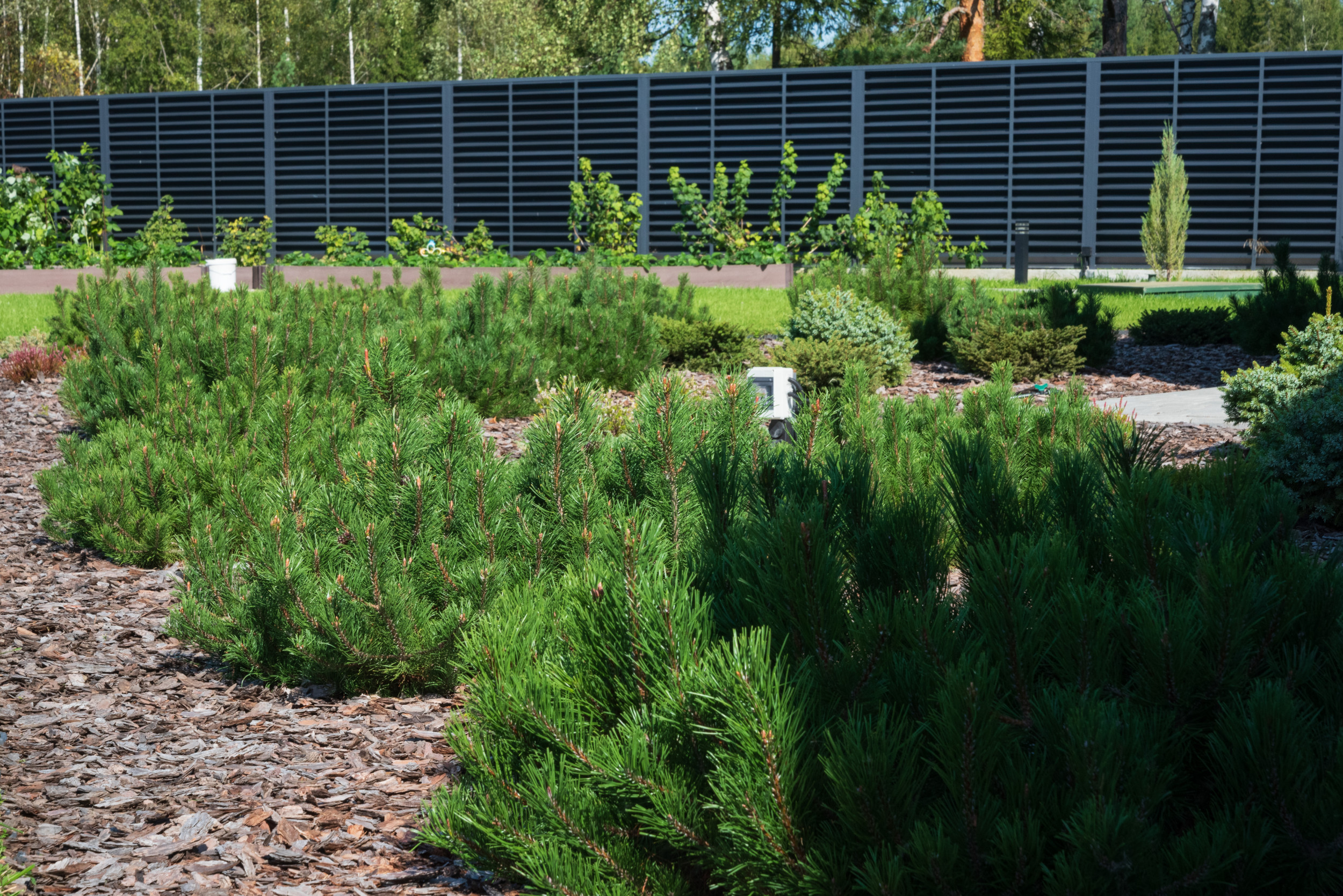 границы участка. Мы использовали высокие хвойные растения, которые не только