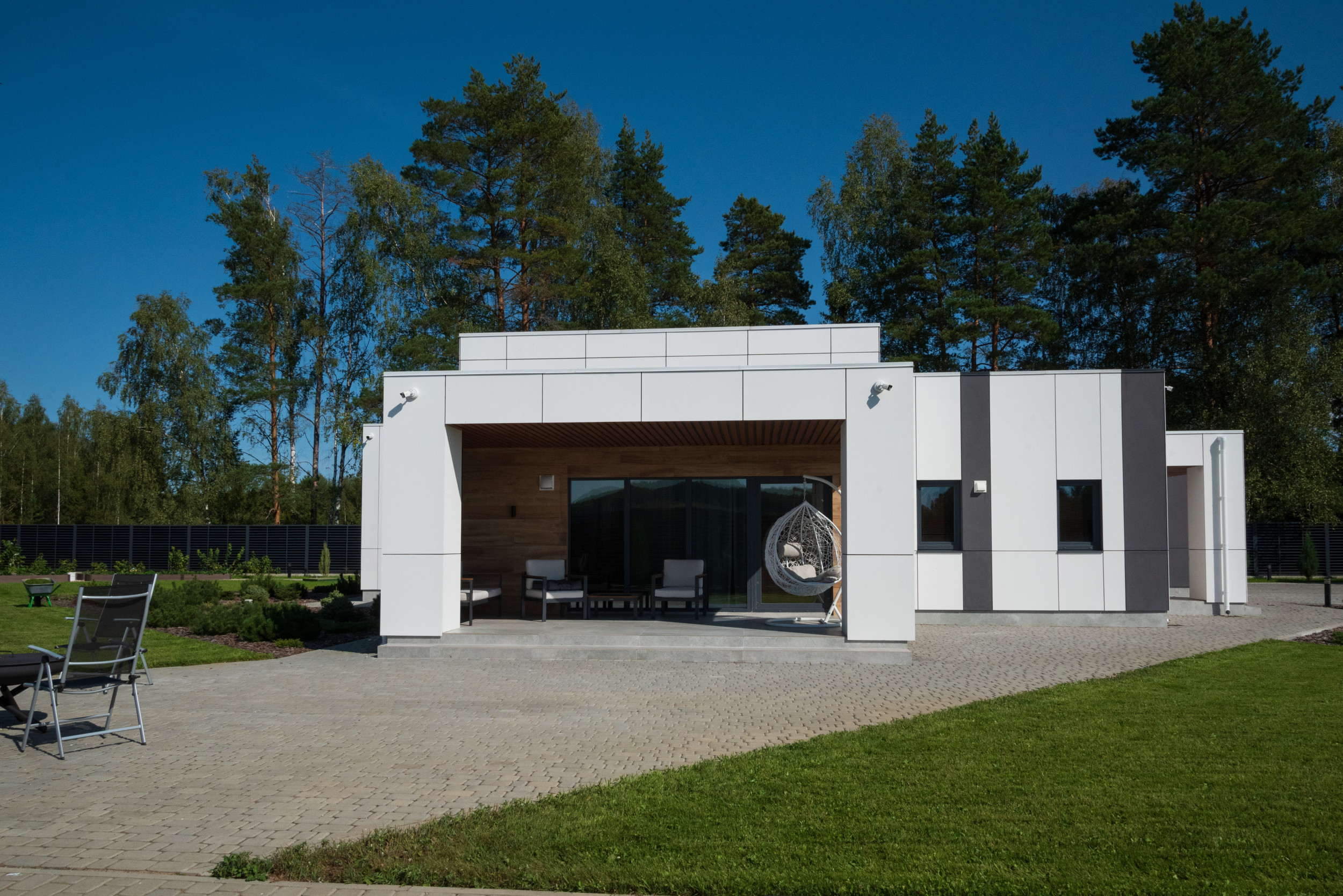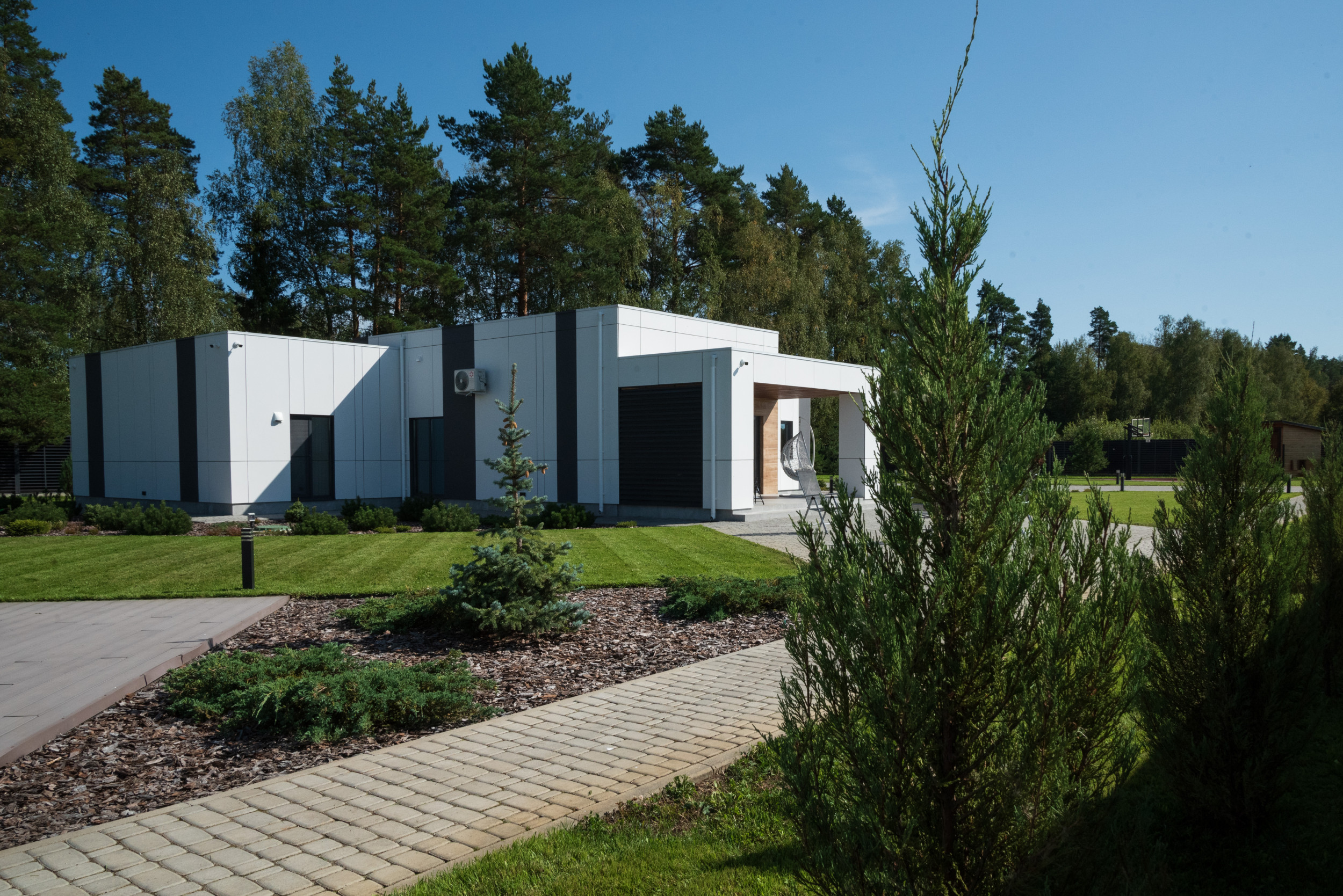 плавный, естественный переход от строгих линий современной архитектуры дома к