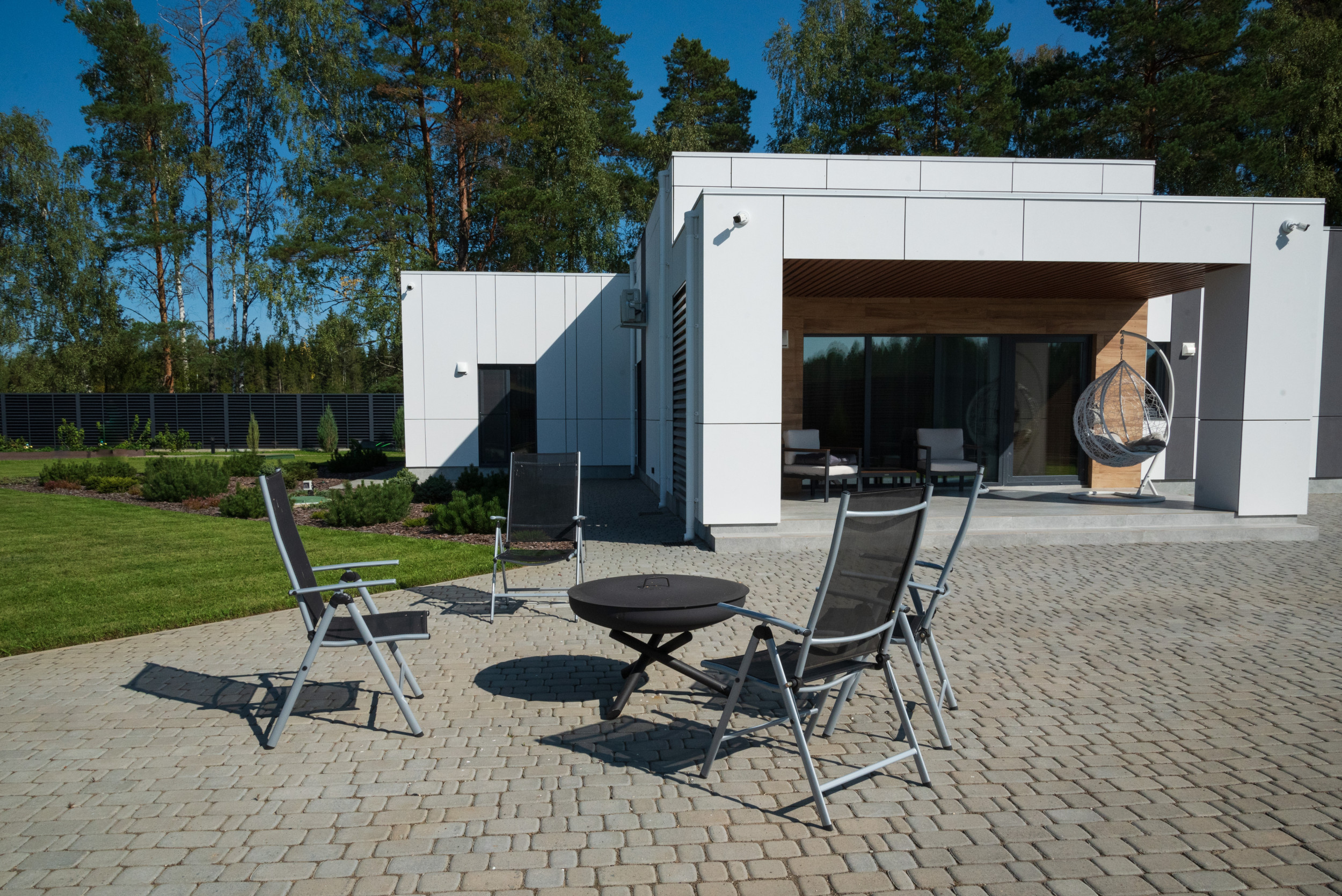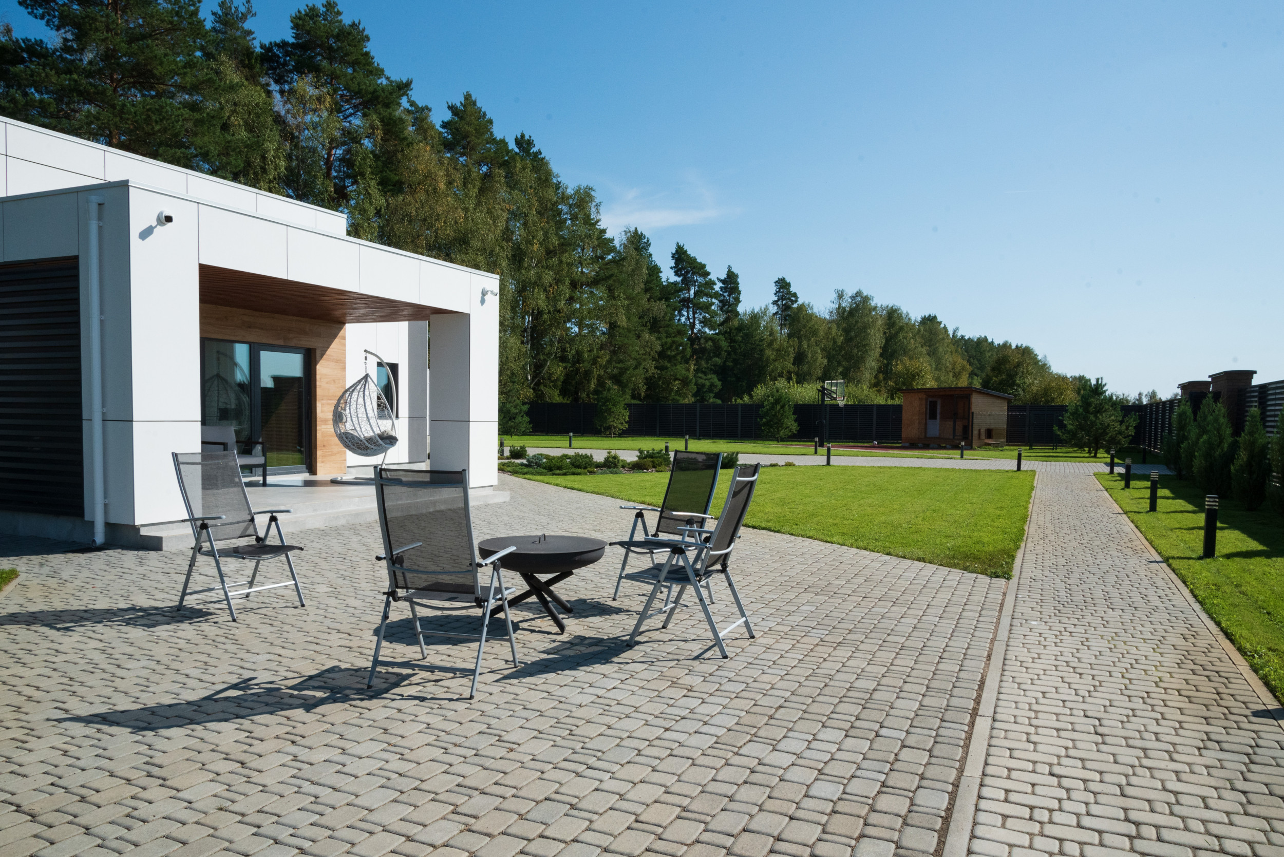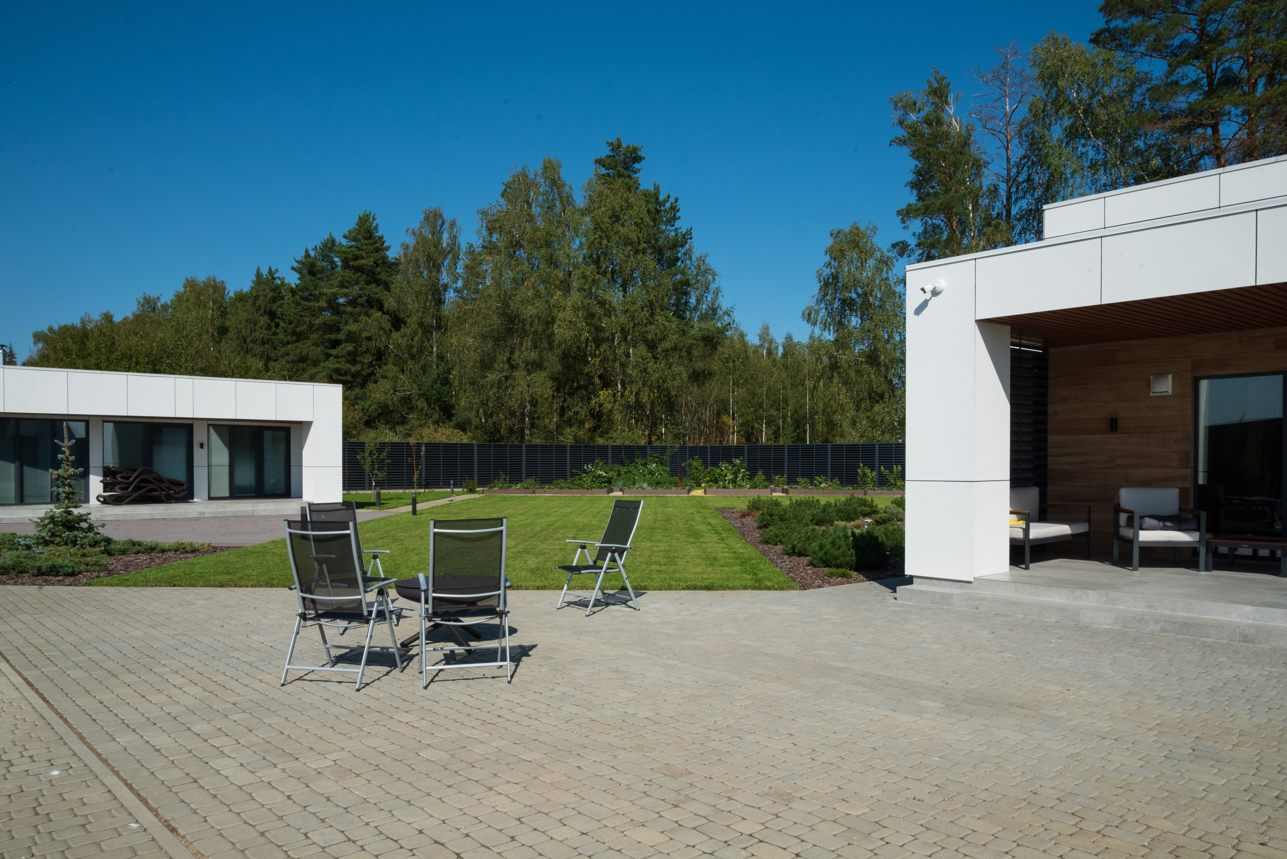 сохранить открытое пространство и визуально не перегружать территорию. На участке также была создана большая терраса для гостей и