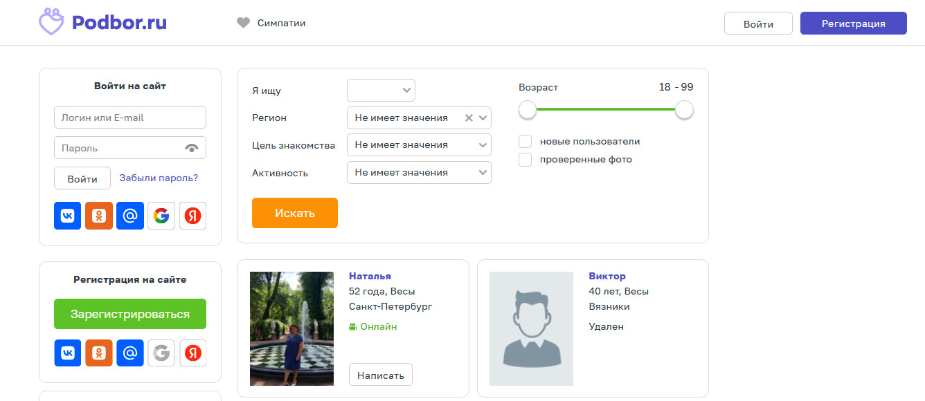- Podbor — акцент на международные знакомства и иностранные спонсоры.