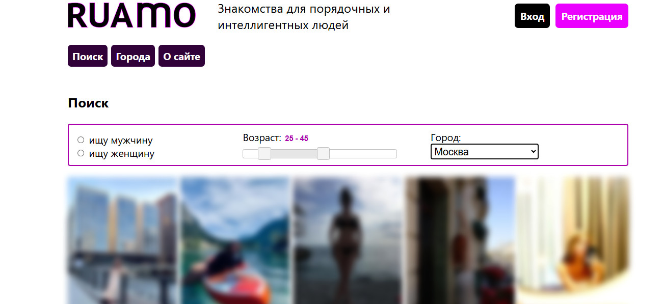 Ruamo специализируется на знакомствах с содержанками внутри России. Форма объявления состоит из трёх блоков: статус отношений, формат помощи, география.