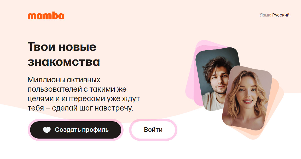 - Mamba — крупнейшее русскоязычное комьюнити, быстрый матчинг и инкогнито.