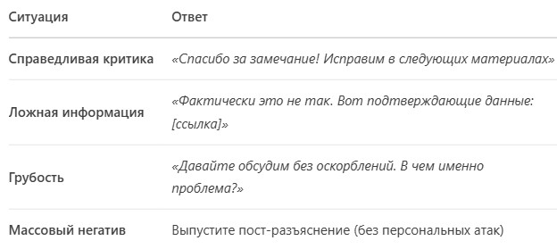 Пример:Канал о финансах грамотно ответил на обвинение в «некорректных расчетах» — и получил +15% новых подписчиков благодаря прозрачности.