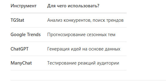 - Проанализировать топ-5 каналов в нише (что нового они тестируют?).