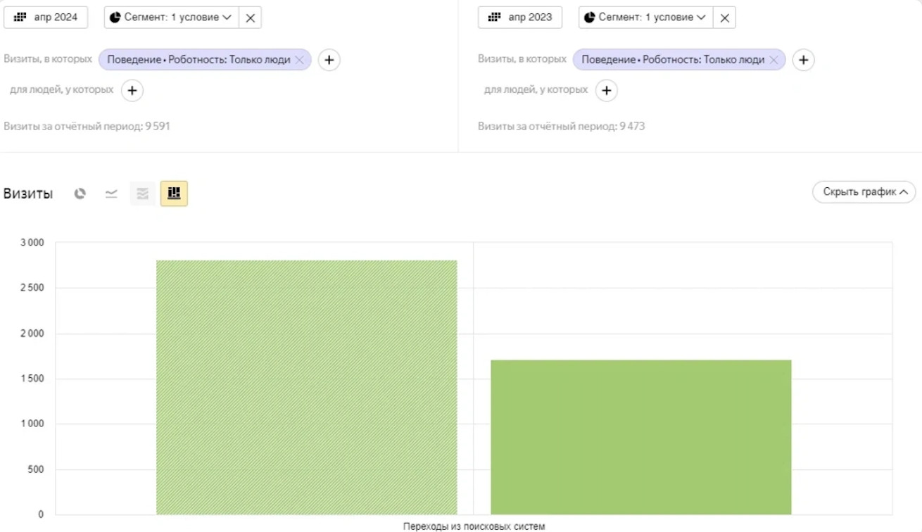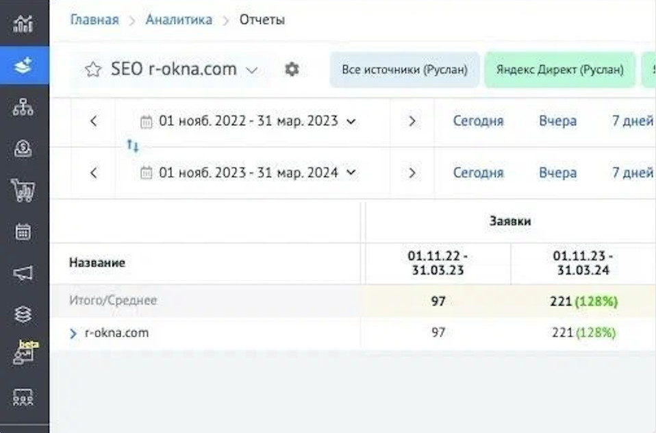 Продвижение сайта мы встроили на последовательной работе с аналитикой, техническими улучшениями и оптимизацией контента. Началось все с глубокой аналитики: собрали семантическое ядро, выявили нехватку посадочных страниц и провели аудит конкурентов. Одной из главных проблем оказалась некорректная структура заголовков и заспамленные тексты, что могло привести к санкциям поисковых систем. В первый месяц мы в основном сосредоточились на исправлении этих ошибок. На втором и третьем месяцах мы работали с юзабилити, микроразметкой, корректировали мета-теги. Дополнительно провели анализ ссылочной массы конкурентов и начали работу с внешними ссылками, из-за чего позиции в Google вышли из стагнации. Уже к третьему месяцу продвижения значительно увеличилась доля запросов в ТОП-10 и ТОП-3 Google. В последующие месяцы работа продолжилась по согласованному плану: устраняли переспам, контролировали внедрение доработок и наращивали ссылочную массу. Регулярный мониторинг ошибок в Яндекс.Вебмастере и Google Search Console позволил оперативно их исправлять. По итогам 6 месяцев продвижения объем трафика на сайт вырос в 2 раза по сравнению со стартом работ. Ну а что касается лидов (то, что беспокоит каждый бизнес), то по нашим данным (отслеживали через достижение целей в Яндекс.Метрике), количество лидов в апреле 2024 относительно декабря 2023 выросло на 47%. Наш клиент отлично разбирается в аналитике и маркетинговых показателях, поэтому лиды он отслеживал самостоятельно через сервис Roistat. Так, по данным Roistat, количество лидов за период с ноября 2023 по март 2024 увеличилось на 127%, по сравнению с периодом с ноября 2022 по март 2023. Когда клиент увидел результаты продвижения, он написал отзыв на своей странице в TenChat. Круг замкнулся, так сказать. Если вы хотите также — приходите к нам в Digital Clouds. Не важно из какой сферы ваш бизнес, наши специалисты умеют работать с любыми нишами. Наши кейсы тому доказательство. А еще мы запускаем контекстную рекламу, таргет, ведем соцсети и пишем статьи. Кстати, если вам понравилась этот материал, подписывайтесь на наш телеграм-канал, там мы регулярно публикуем много всего интересного и полезного.