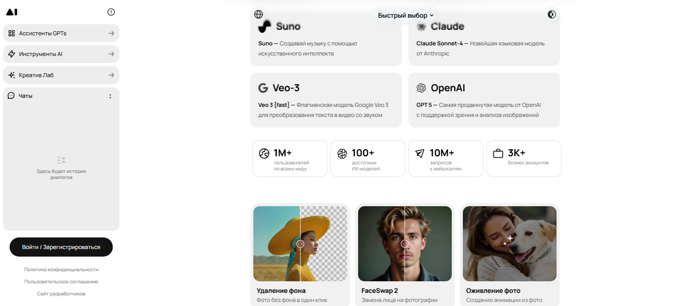 Главное достоинство — полный офлайн. Команда /swap запускает TensorFlow-Lite прямо на смартфоне: можно подставить ИИ лицо на фото происходит без выхода в интернет. Бесплатный лимит—20 свопов/сутки; «Safe Vault» за 4,99 $ снимает ограничения и добавляет 4 K. Бот понимает /gif для анимаций и /batch10 для пакета снимков. Единственный минус — файлы >25 МБ режутся. Я использовал GPTunnel в аэропорту: мобильный интернет еле тянул, но локальный рендер спас. После /purge чат выдал «All files erased» — успокоил параноика во мне.
