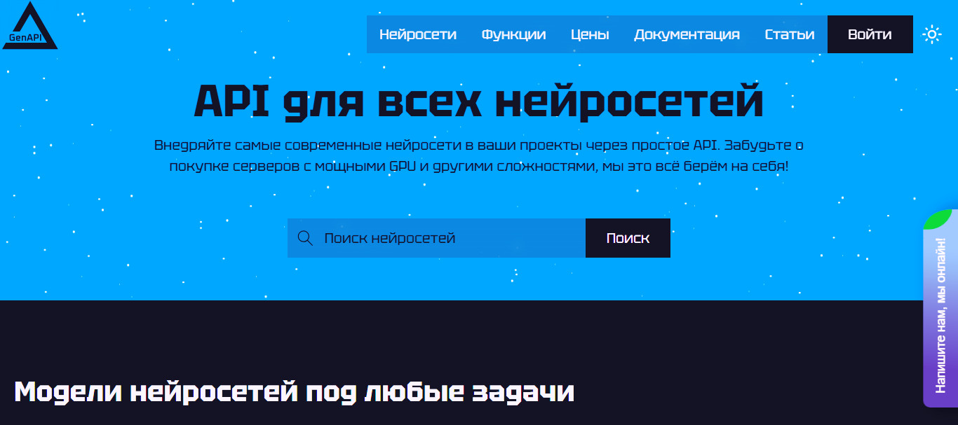- Для разработчиков — GenAPI: REST-конвейер подключается к боту, сайту или игре.