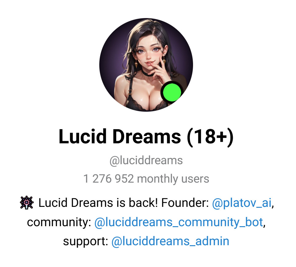 Lucid Dreams (18+). Один устойчивый образ виртуальной собеседницы для камерного флирта и спокойных откровенных диалогов.