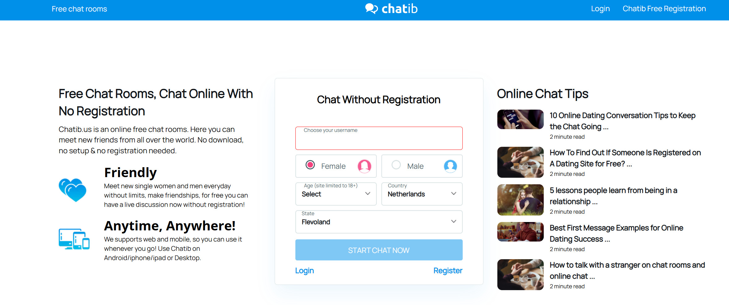 Chatib. Бесплатные открытые и приватные комнаты для анонимных диалогов, где можно постепенно уйти в более взрослые темы.