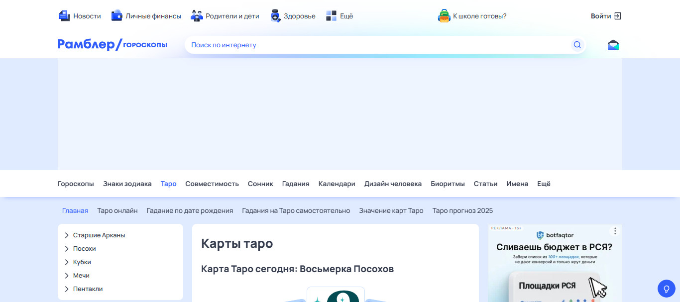 9. Rambler Гороскопы — мгновенный автоматический расклад «на попробовать»