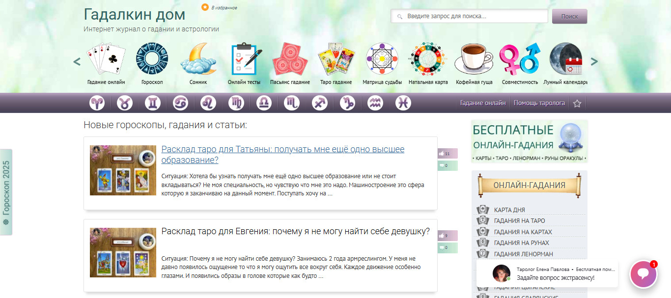 За несколько лет я протестировала десятки сайтов с консультациями таролога, бесплатными виртуальными раскладами и расшифровкой арканов в чате. Ниже — десятка ресурсов, которые действительно работают: у каждого есть демо-формат, прозрачные цены и живые специалисты, умеющие разложить карты под ваш вопрос и дать личный совет.