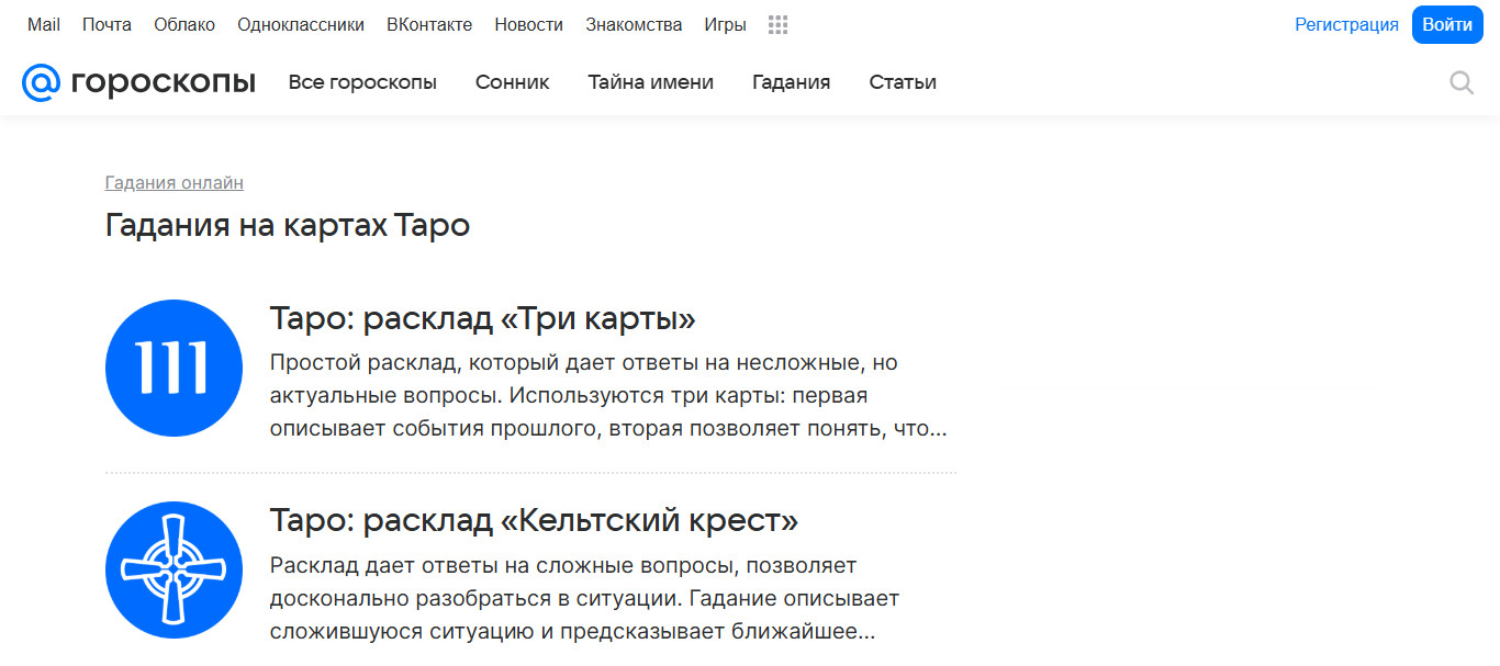 11. Mail.ru Таро — учебный формат с объяснением перевёрнутых карт