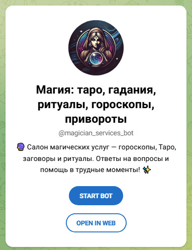 - Что предлагают. В витрине бота собраны услуги таролога: карта дня, онлайн расклад таро на ситуацию, ресурсный анализ и персональный расклад таро на год. Чтобы заказать расклад таролога онлайн, достаточно задать вопрос картам и пополнить баланс; деньги удерживаются ботом до подтверждения результата. Любой расклад сопровождается расшифровкой карт и ссылкой на архив, где можно пересмотреть предсказание таро онлайн в удобное время.