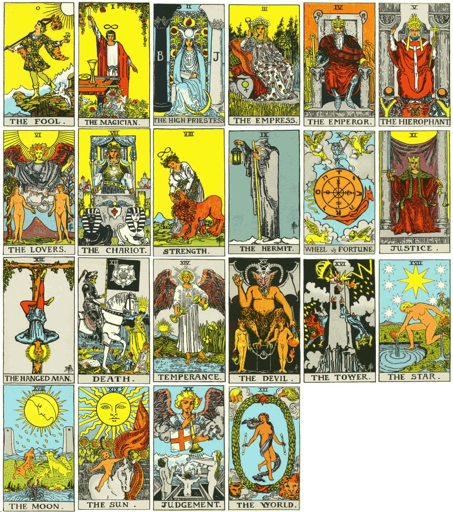 Старших Арканах ты найдёшь планеты, знаки Зодиака и стихии. Например,
