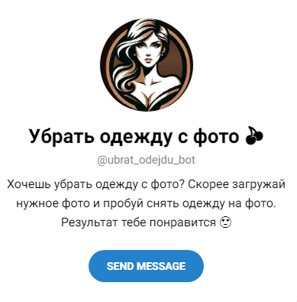 Функционал: Чтобы раздeть человека на фотографии потребуется всего 1 минута. При открытии страницы бота пользователю предоставляется возможность изучить инструкцию, составить обращение к специалистам поддержки и приобрести тот или иной пакет обработок. Приложение для раздевaния работает круглосуточно, а потому начать можно в любой момент.