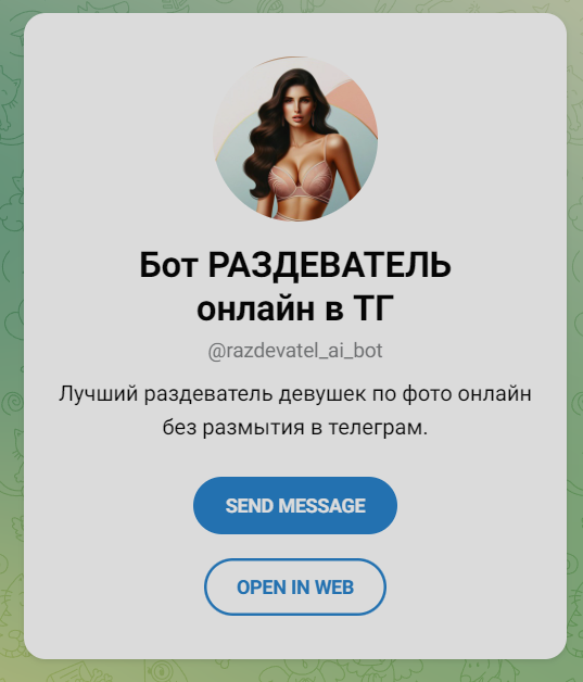 Мой вердикт: В этом боте присутствует возможность снять одежду с фото всего за несколько секунд, причем кадры получаются сочными и живыми. В скорости работы и управлении никаких недостатков нет.