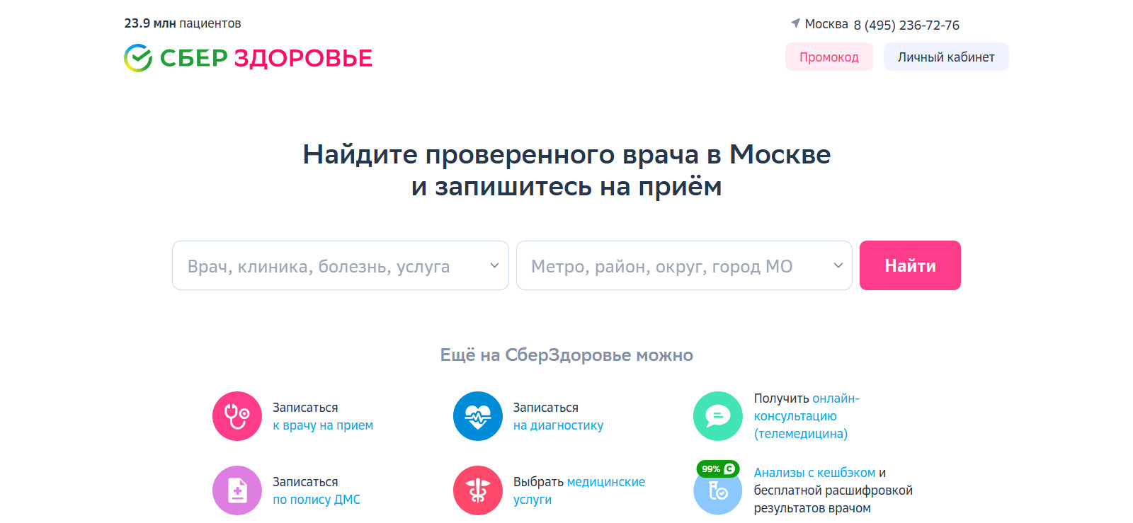 - СберЗдоровье — медицинский маркетплейс, в котором помимо врачей представлены и психологи.