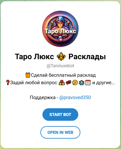 - Таро Люкс — авторские расклады в Telegram, ручная работа мастеров