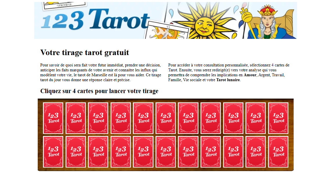 - 123-tarot — простой сайт бесплатных гаданий таро без регистрации