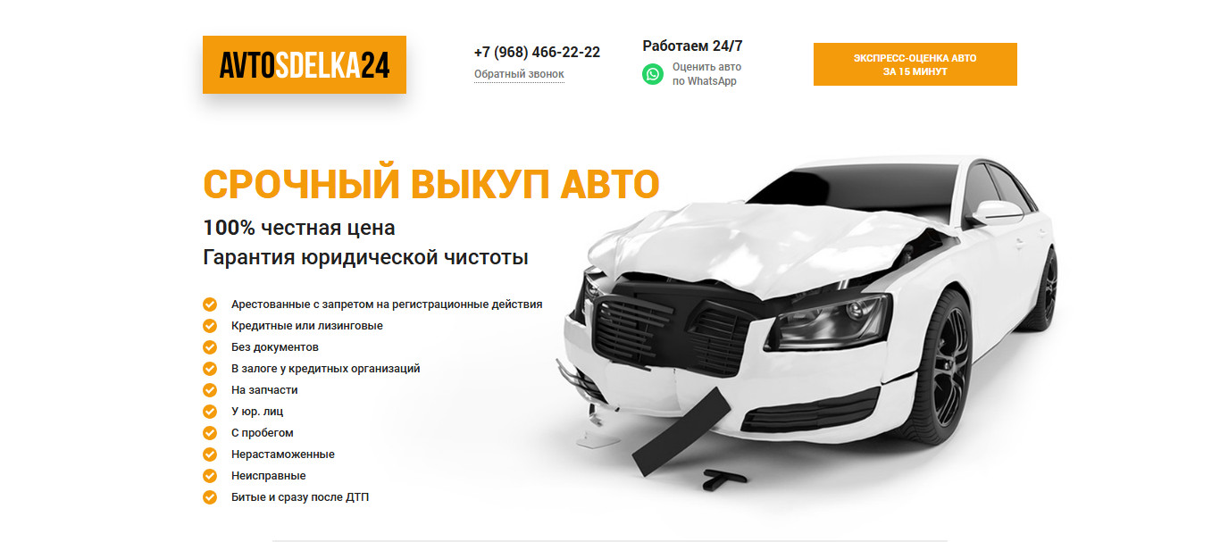 Автосделка 24 — выкуп машин в любом состоянии, включая выкуп автомобилей после ДТП, бесплатная эвакуация нерабочего транспорта, срочная продажа авто за 2 часа.
