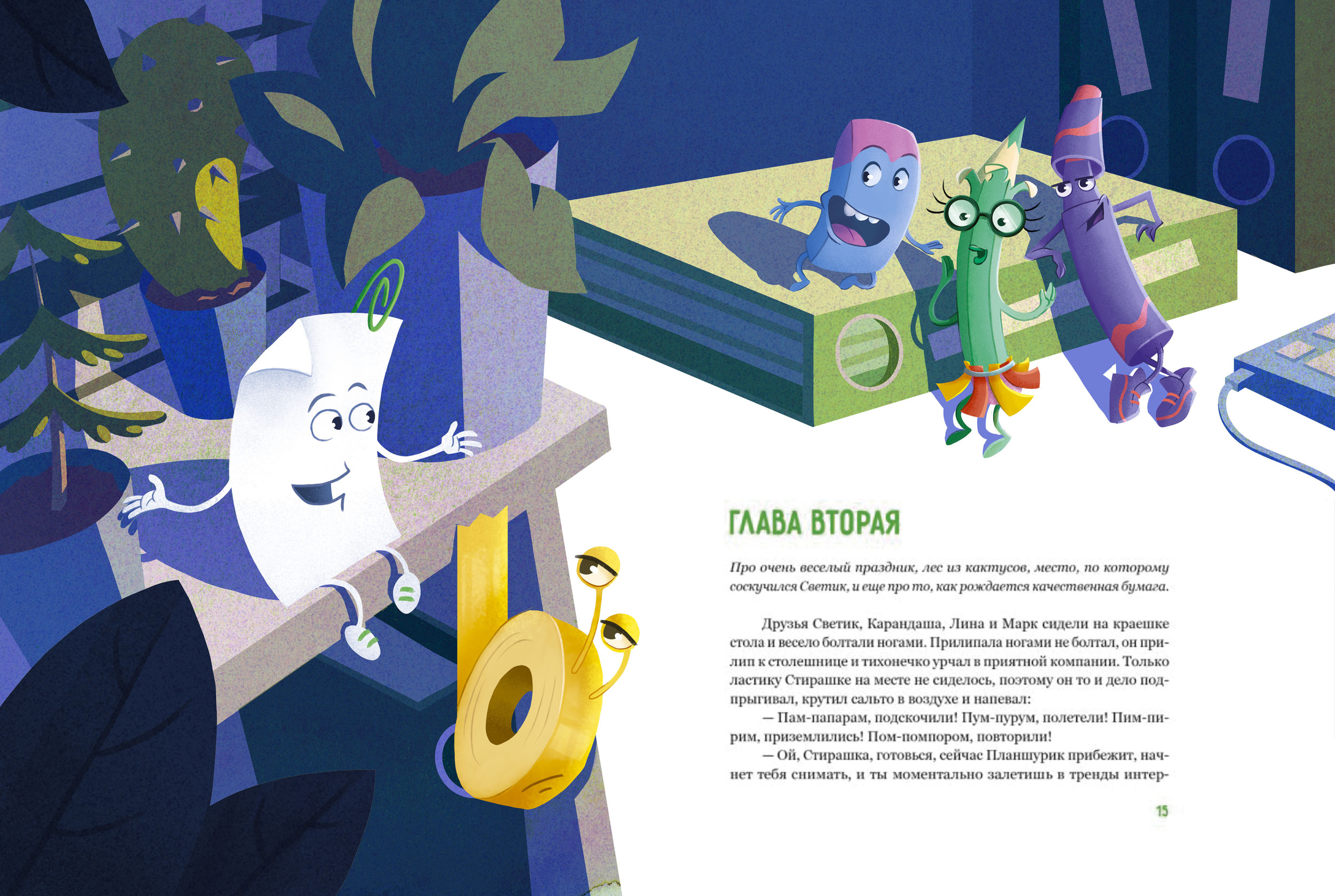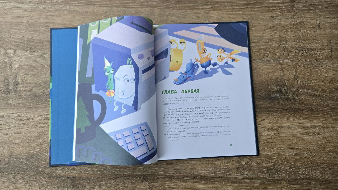 Книга напечатана на офсетной бумаге SvetoPrint Светогорского ЦБК. В ней легко и с юмором герои рассказывают о важной роли офисной бумаги в жизни людей, ответственном лесопользовании, о работе комбината, производственных процессах, профессиях и людях, которые стоят за изготовлением такой знакомой всем продукции.